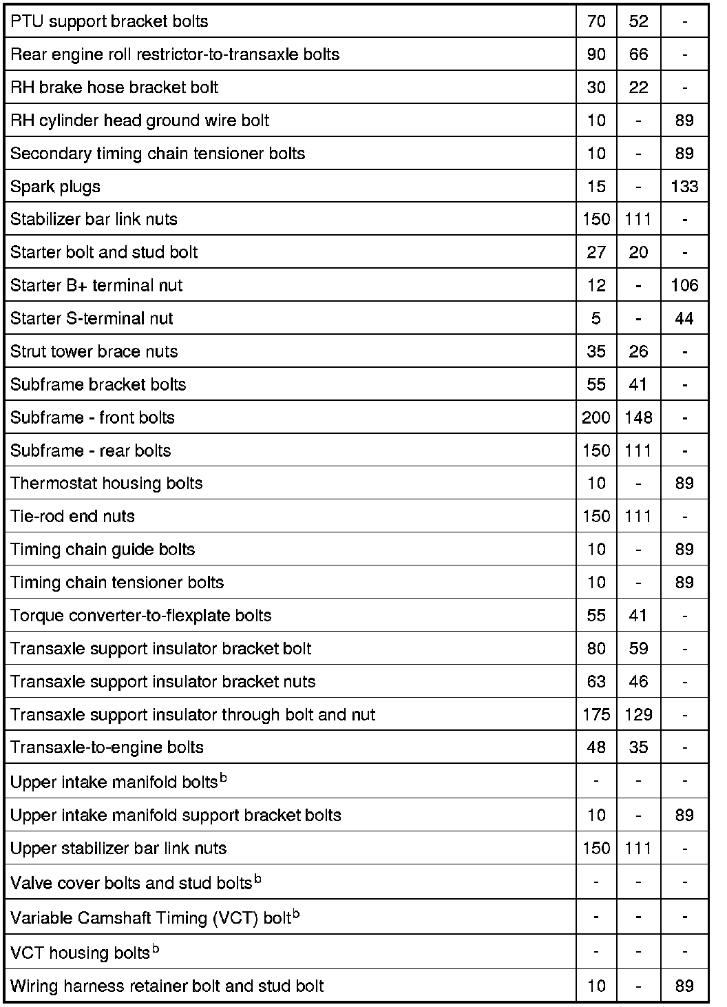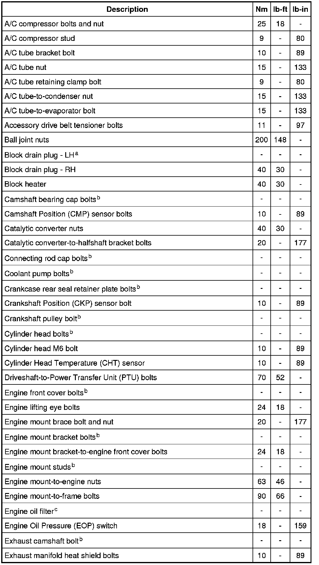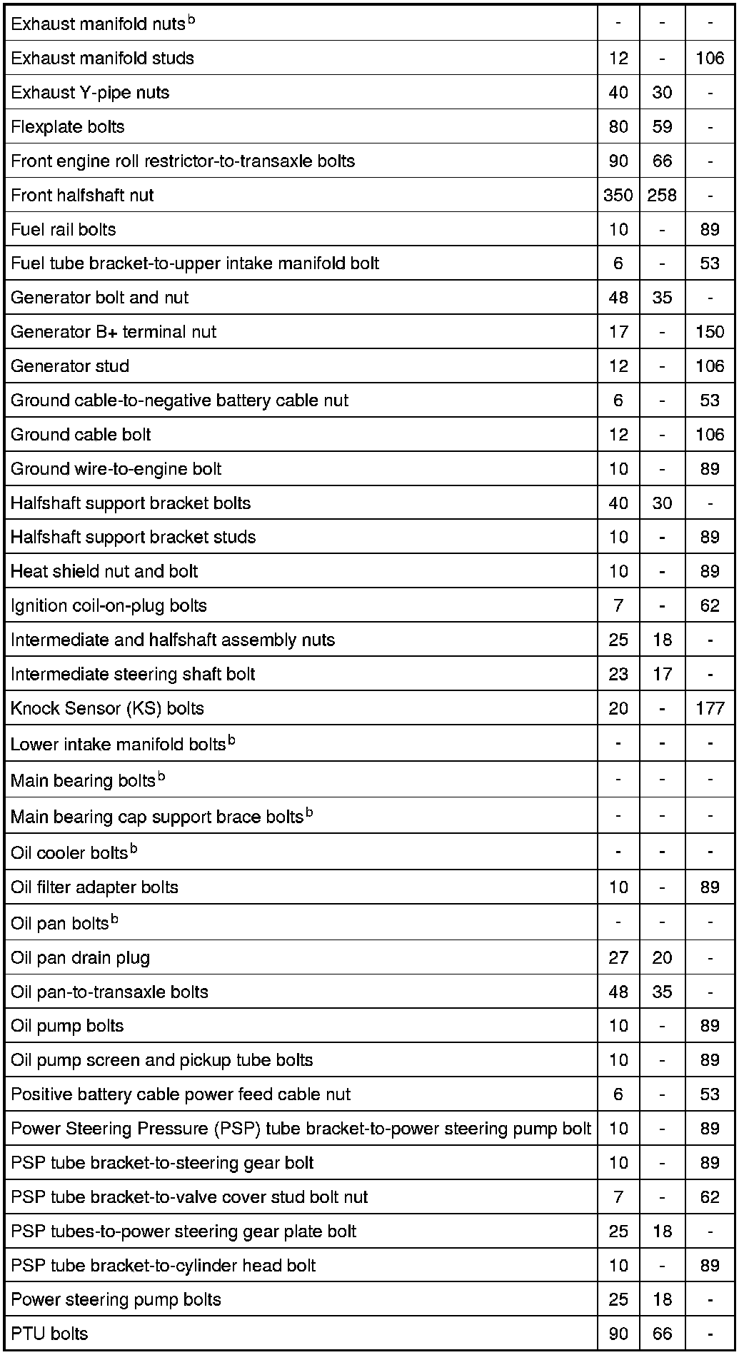 Torque Specifications