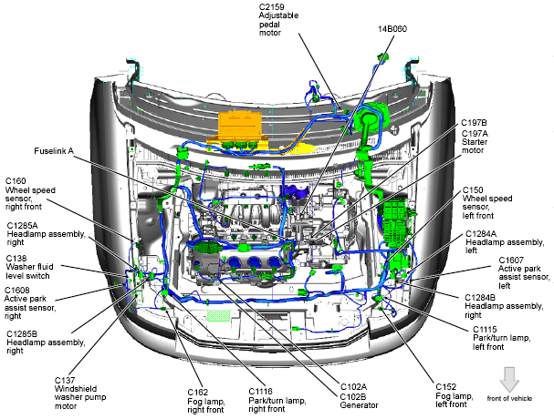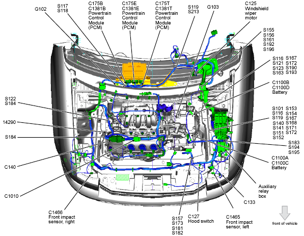 | Battery Junction Box (BJB) | Left side of engine compartment. See Figure. |