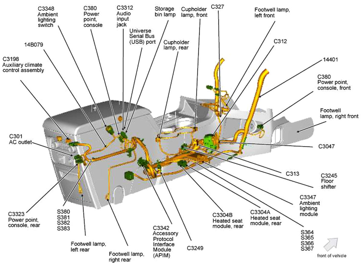 | Accessory Protocol Interface Module (APIM) | Center console. See Figure. |