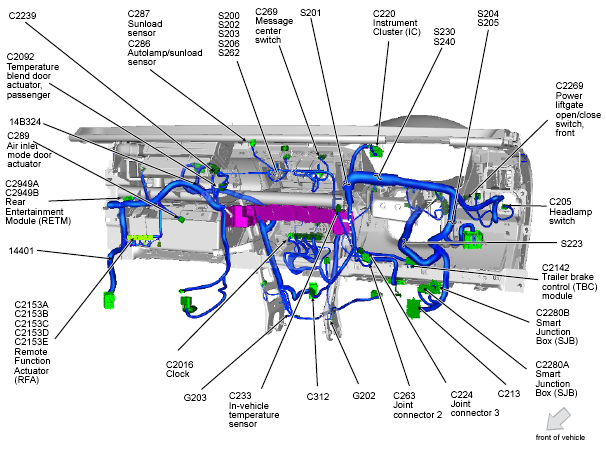 | Fuel Pump Control Module | Right "C" pillar. See Figure. |