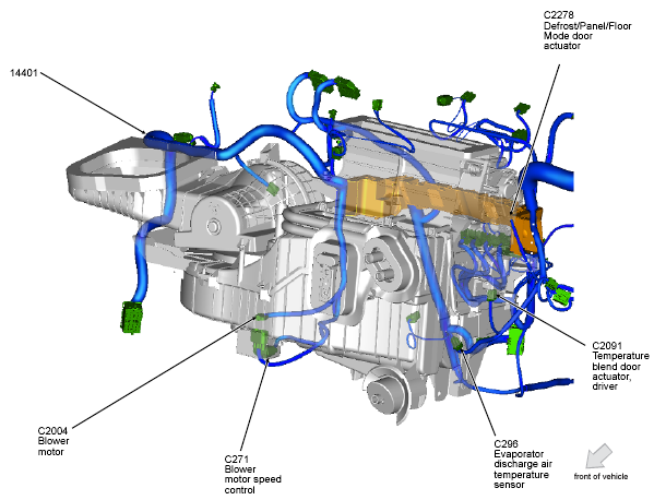 | Blower Motor Speed Controller | Right side of HVAC unit. See Figure. |