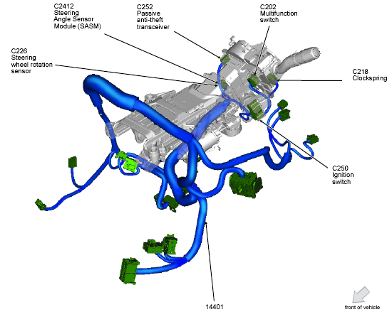 | Steering Angle Sensor Module (SASM) | Top of steering column. See Figure. |