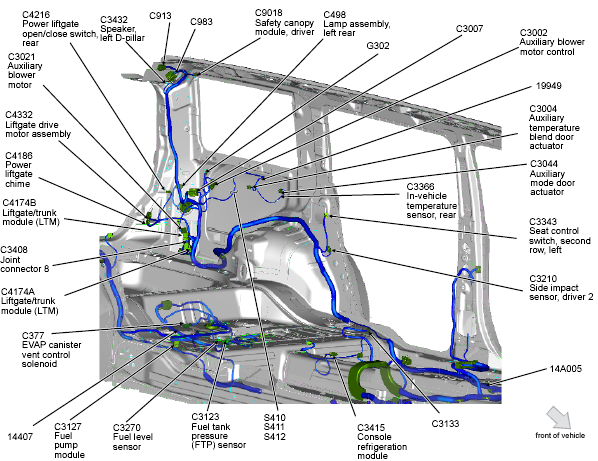 | Auxiliary Blower Control Module | Left rear quarterpanel. See Figure. |