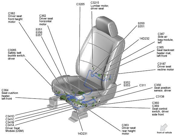 | Seat Module (DSM) (Driver) | Under driver's seat. See Figure. |