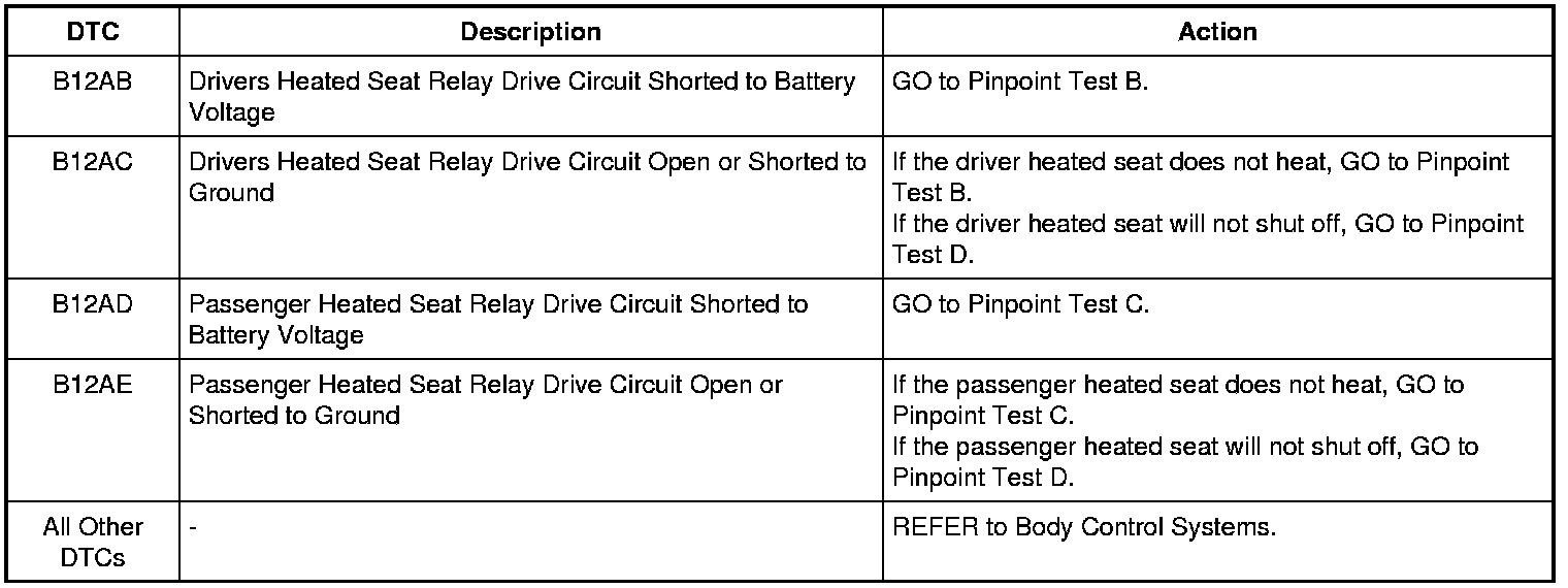 Only DTCs related to the heated seat system are listed. For all other HVAC module DTCs, refer to