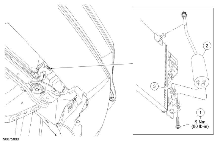 1. With the vehicle in NEUTRAL, position it on a hoist. For additional information, refer to Vehicle Jacking and Lifting.