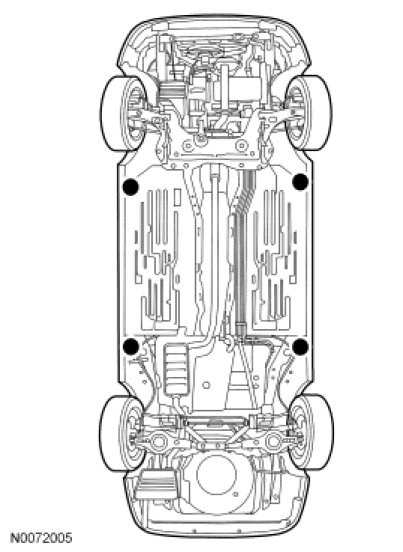 NOTICE: It is not recommended that the vehicle is jacked or lifted on the rear suspension crossmember. If the vehicle must be lifted on the crossmember, make sure that the jack or lift is positioned centrally. Failure to follow these instructions will result in deformation of the closing plate which will weaken the crossmember.