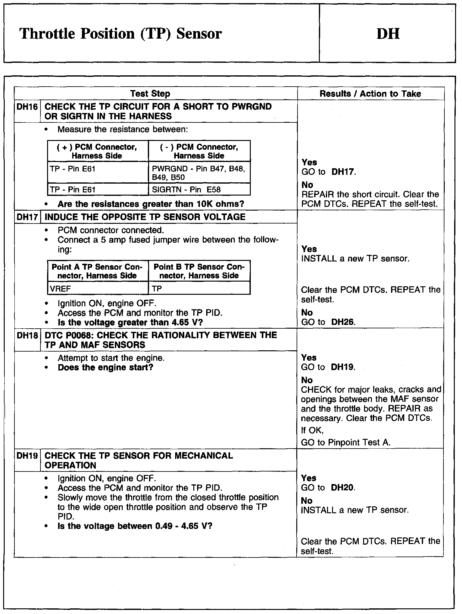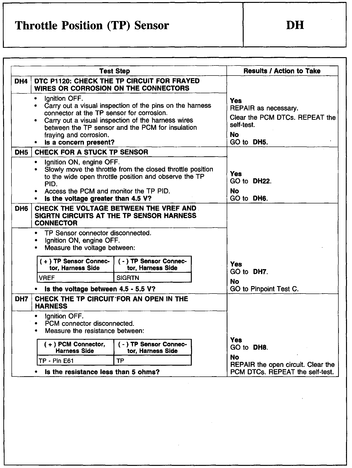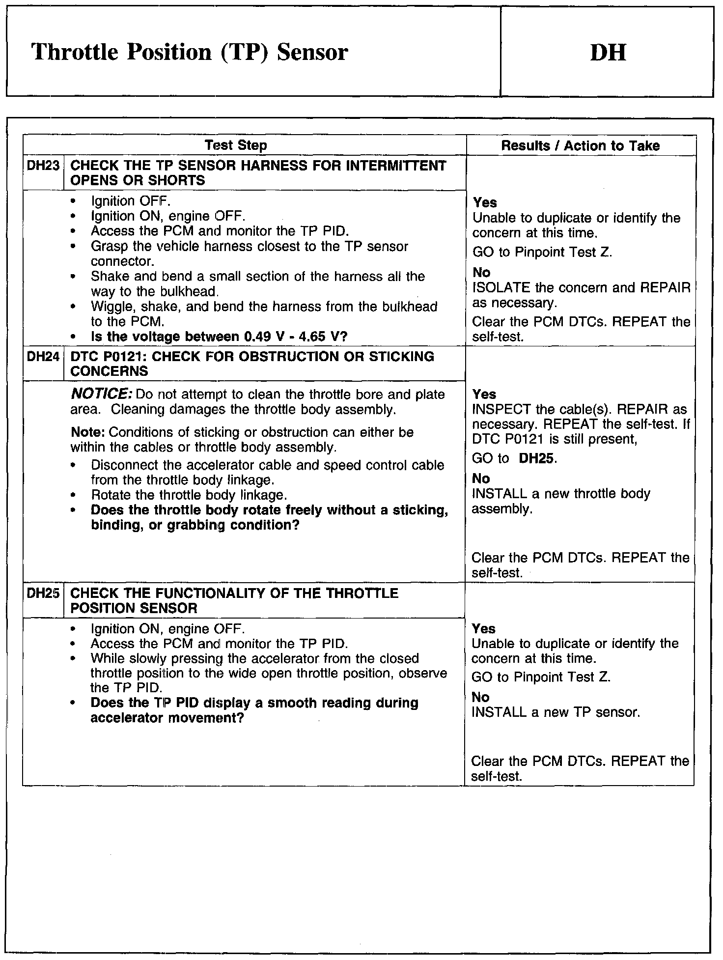 PINPOINT TEST DH: THROTTLE POSITION (TP) SENSOR
