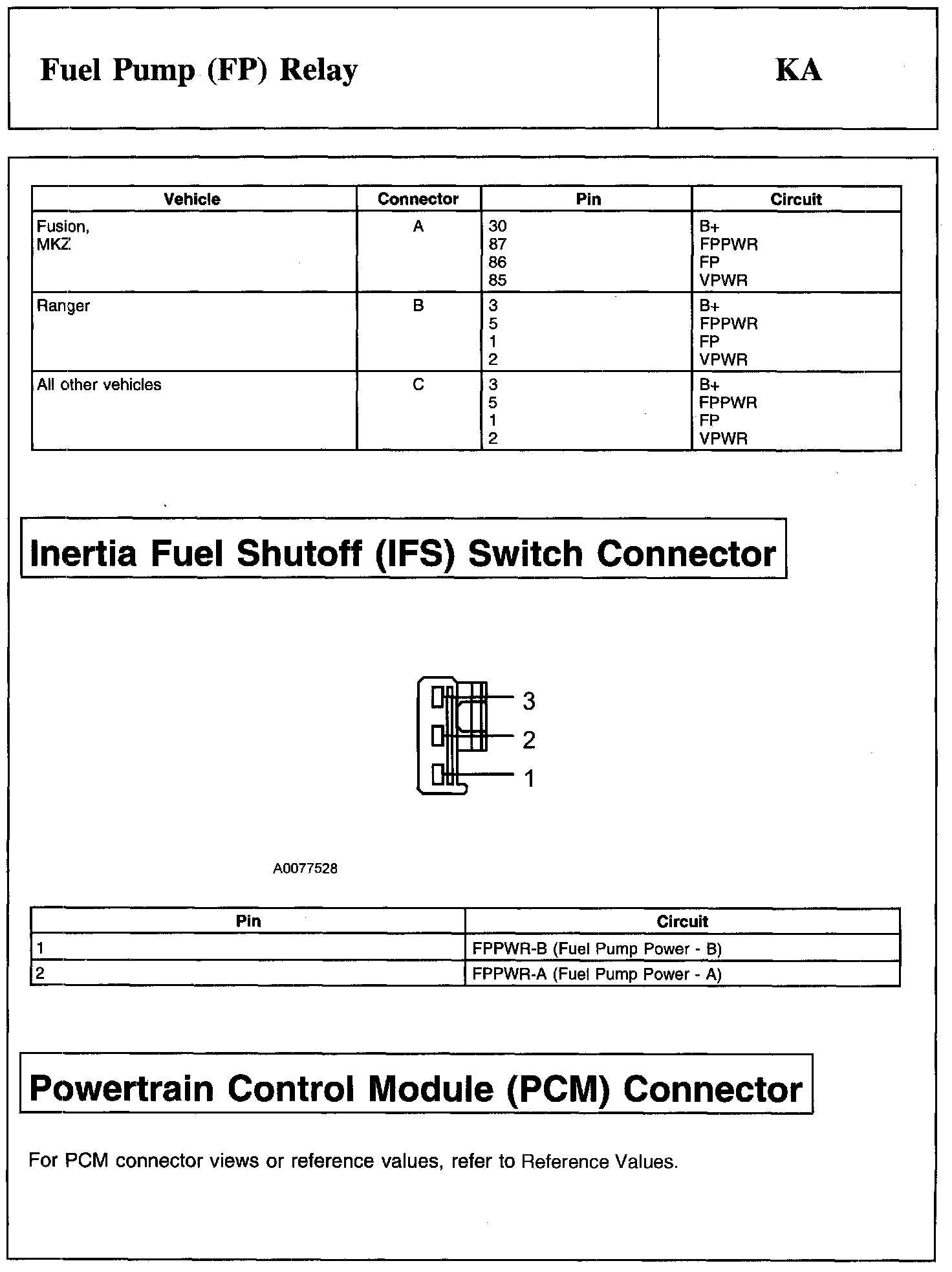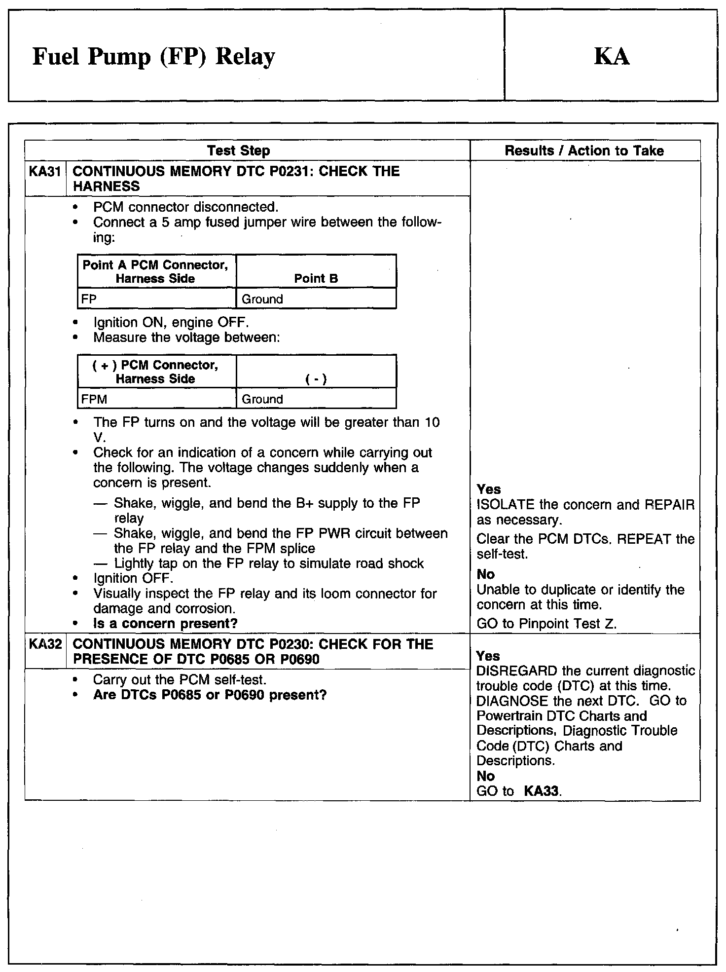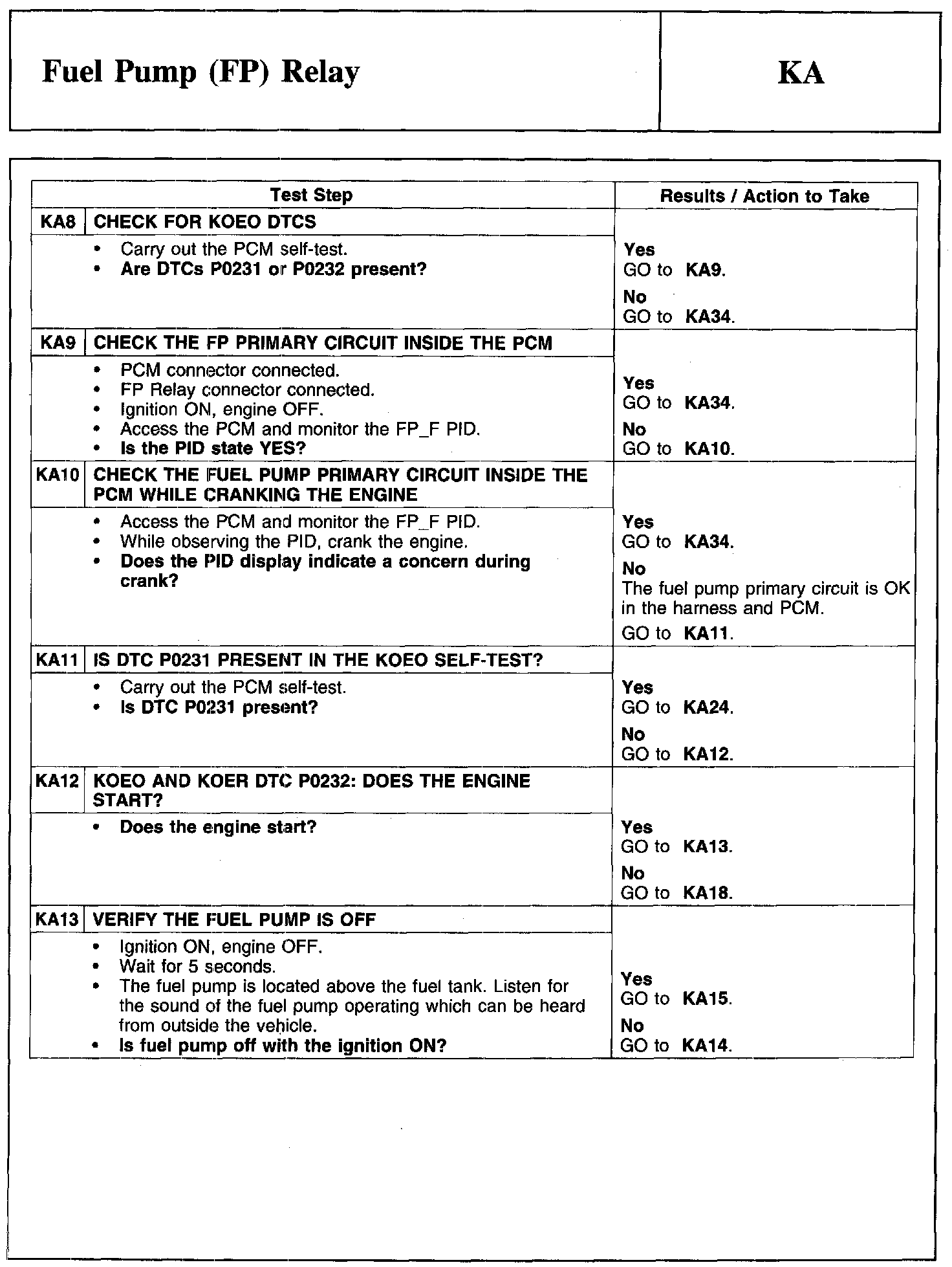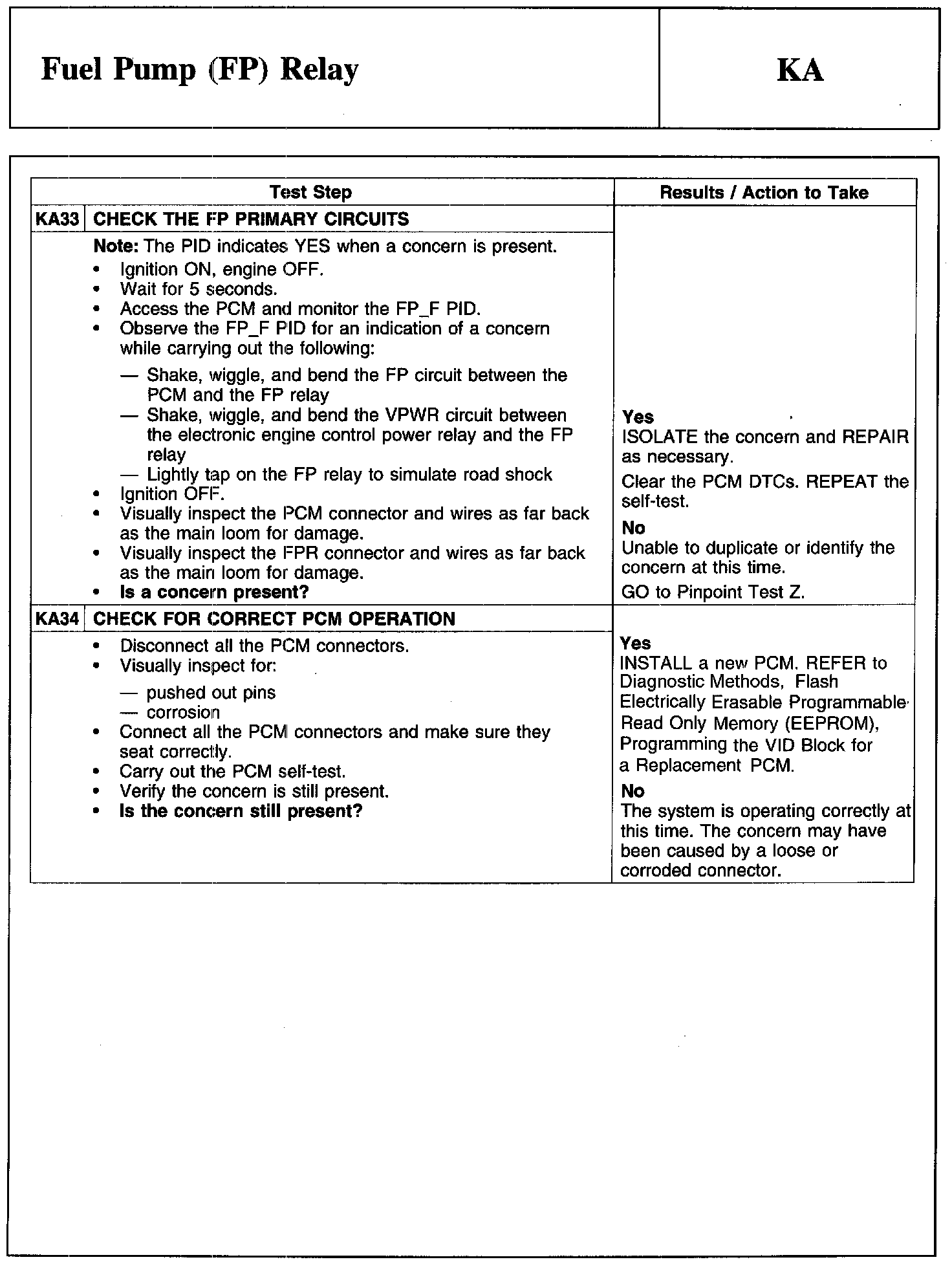 PINPOINT TEST KA: FUEL PUMP (FP) RELAY