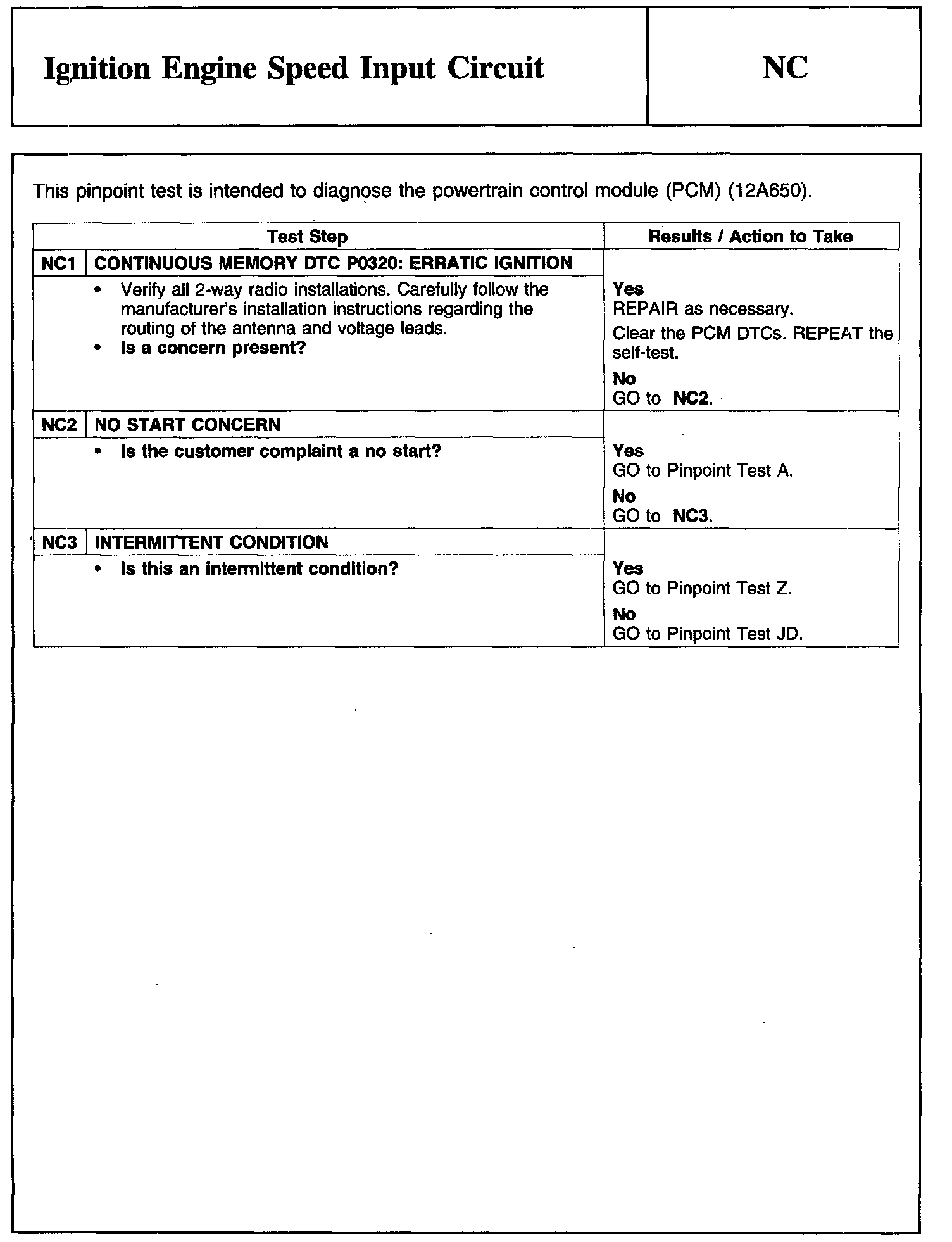 PINPOINT TEST NC: IGNITION ENGINE SPEED INPUT CIRCUIT