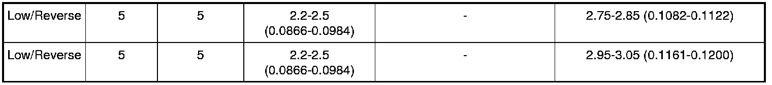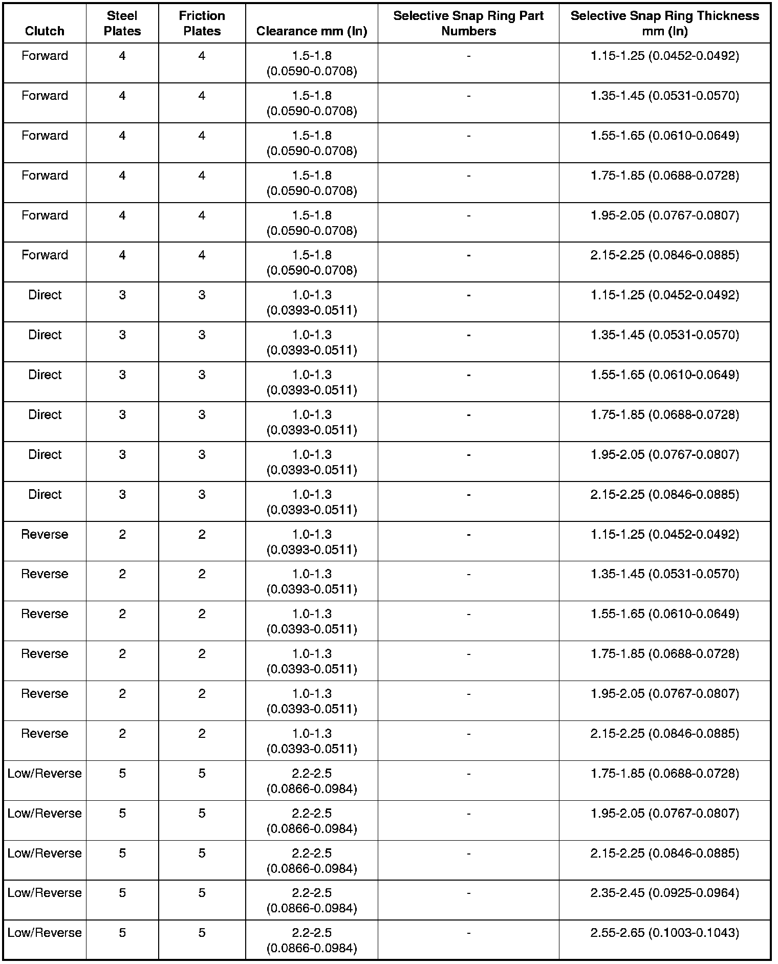 Clutch Plate Usage and Clearance Specification Chart