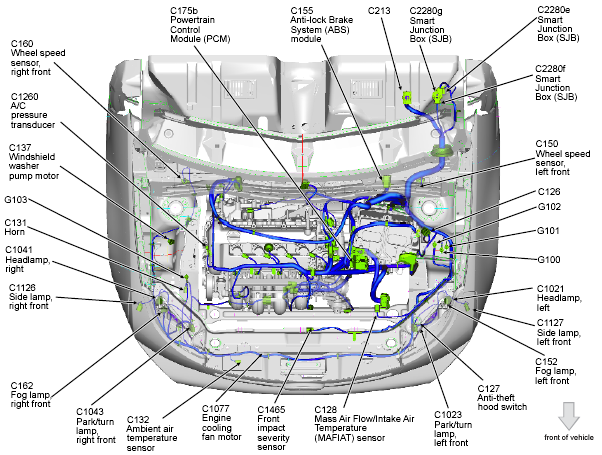 | Anti-Lock Brake System (ABS) Control Module | Left rear corner of engine compartment. See Figure. |