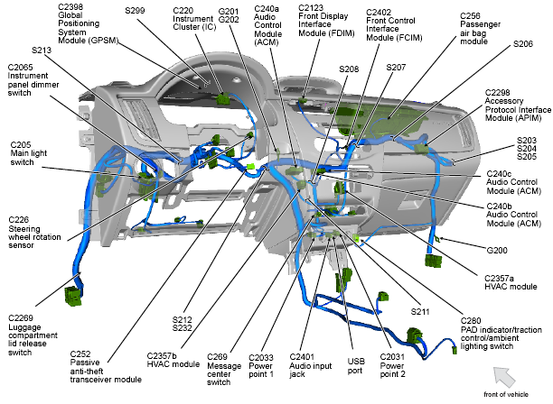 | Audio Control Module (ACM) | Center of dash. See Figure. |