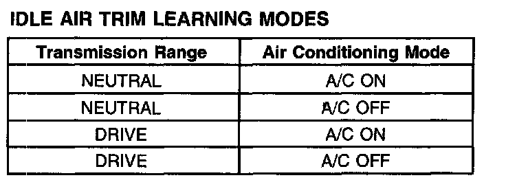 Idle Air Trim Learning Modes: