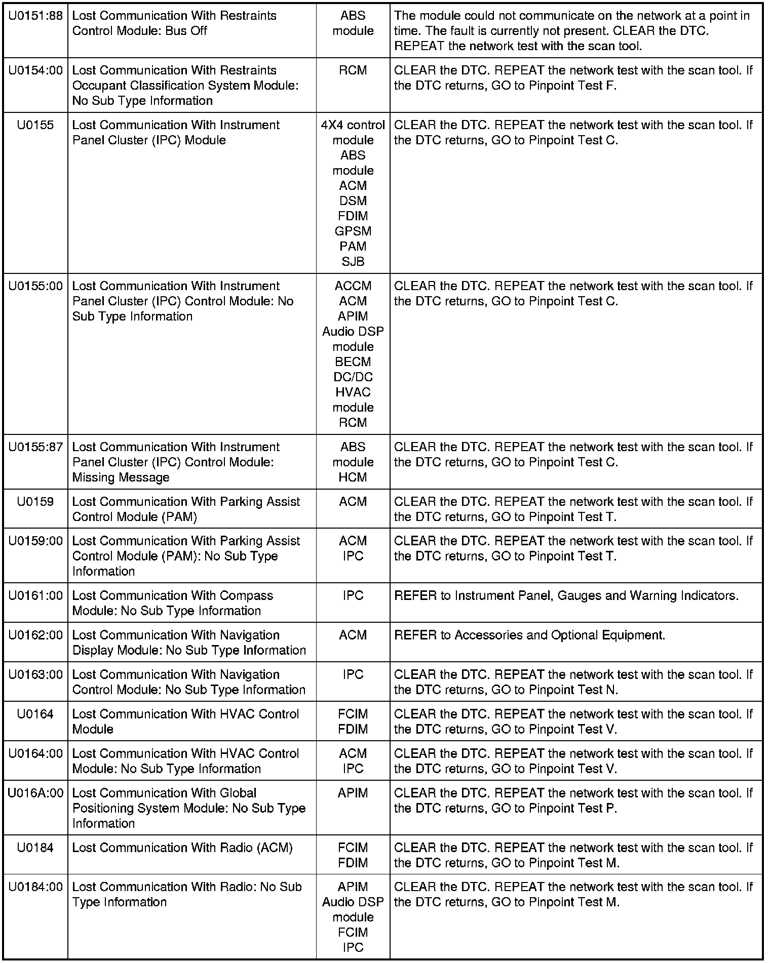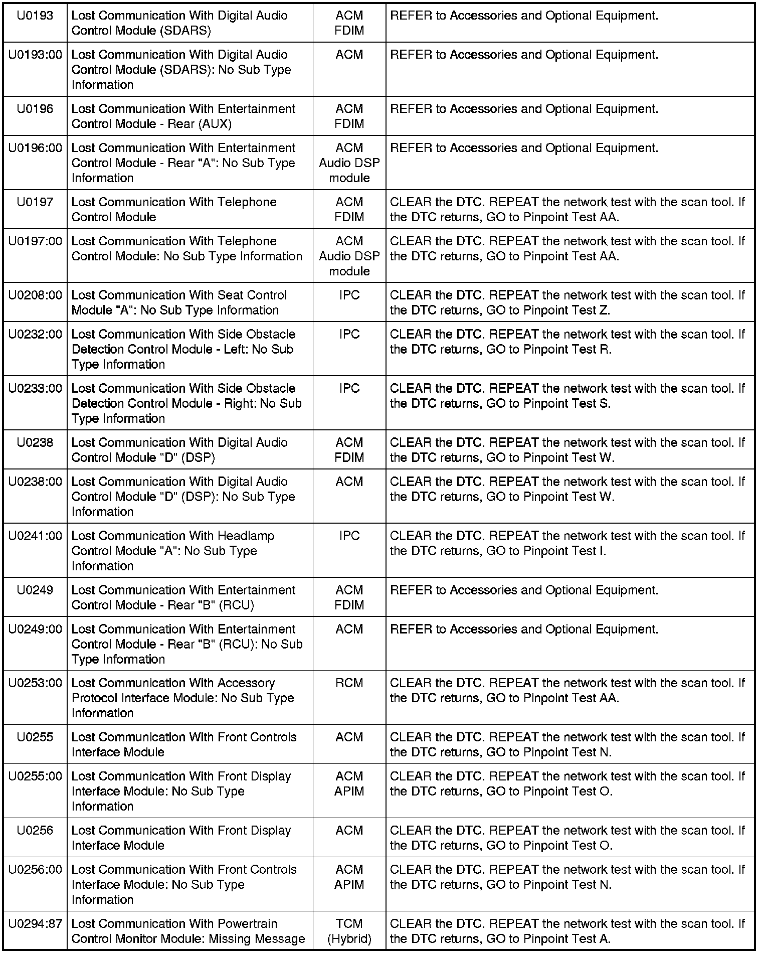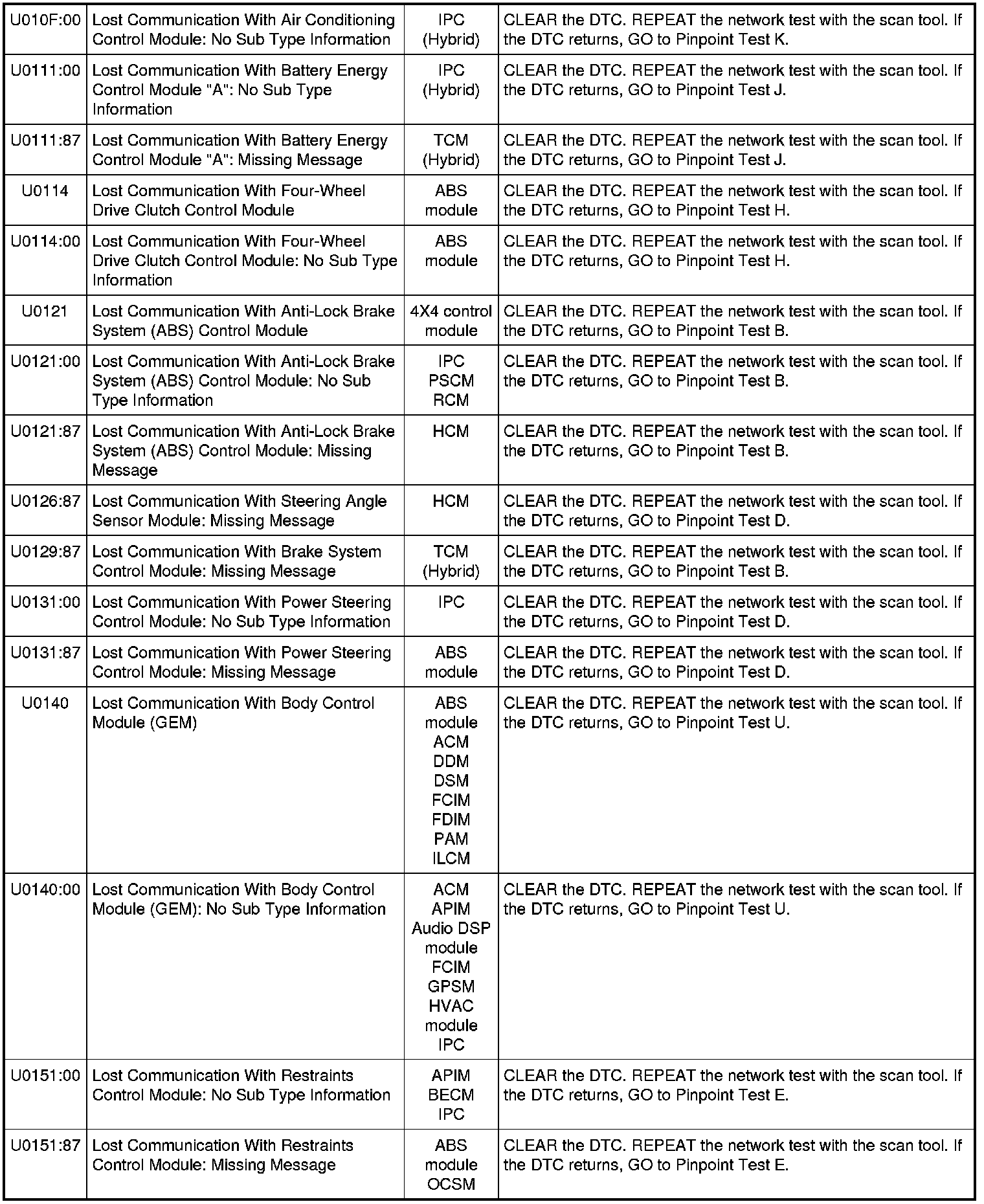 Home >> Ford >> 2010 >> Fusion AWD V6-3.5L >> Repair and Diagnosis >> Powertrain Management >> Computers and Control Systems >> Information Bus >> Testing and Inspection >> Diagnostic Trouble Code Tests and Associated Procedures >> Communications Network