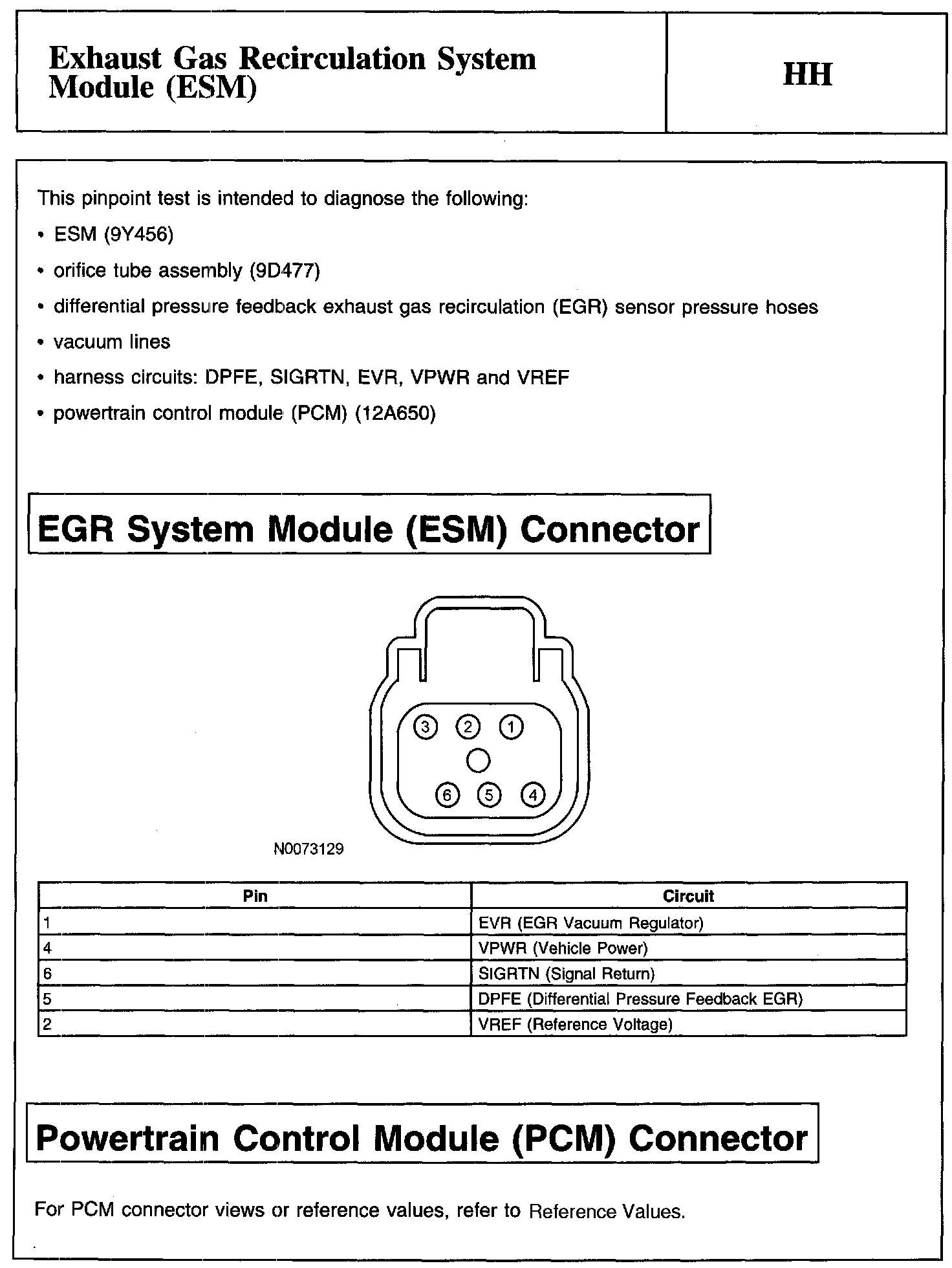 PINPOINT TEST HH: EXHAUST GAS RECIRCULATION SYSTEM MODULE (ESM)