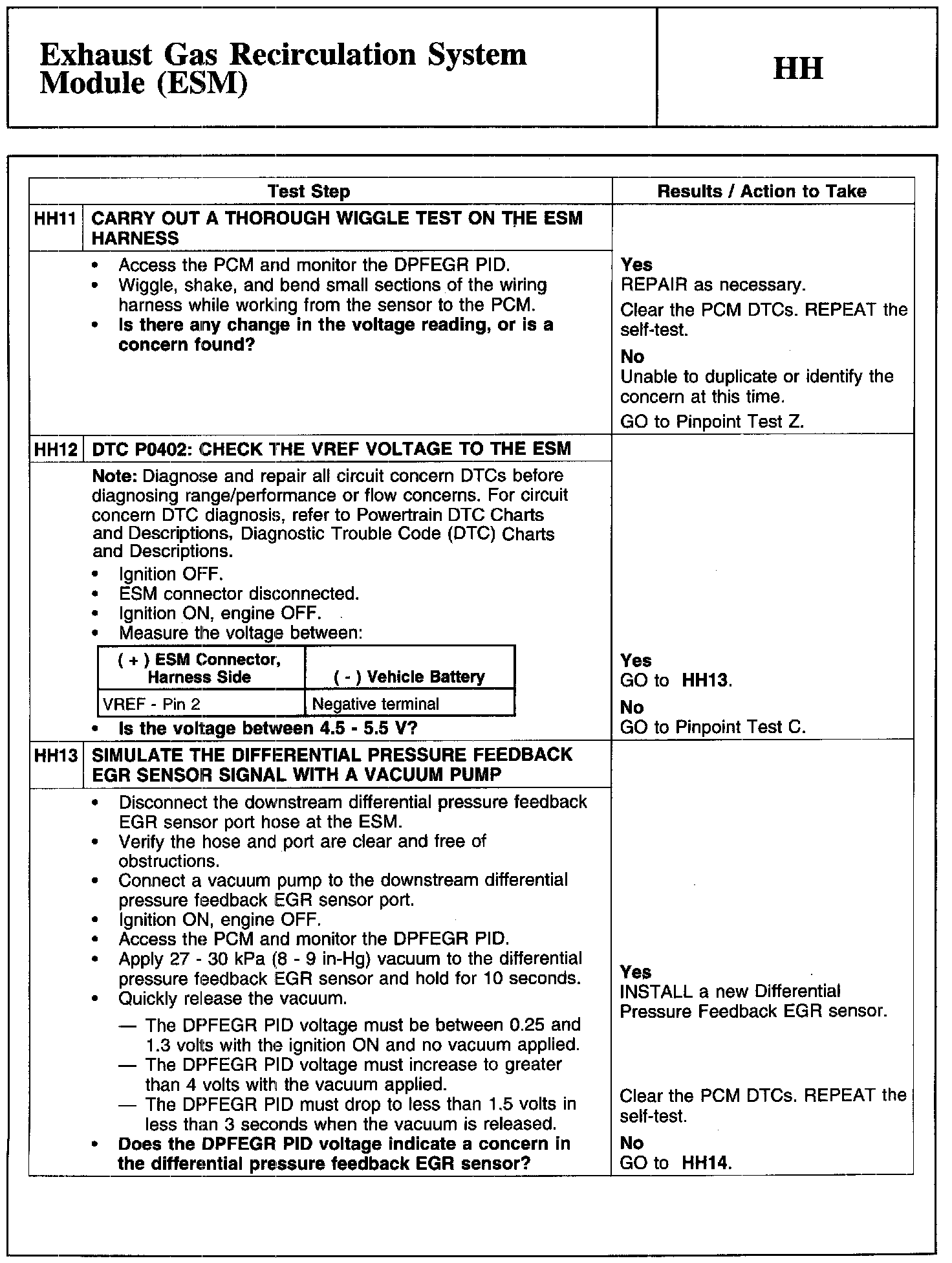 Home >> Ford >> 2010 >> Fusion AWD V6-3.5L >> Repair and Diagnosis >> Powertrain Management >> Computers and Control Systems >> Testing and Inspection >> Pinpoint Tests >> Test HH: Exhaust Gas Recirculation System Module (ESM)