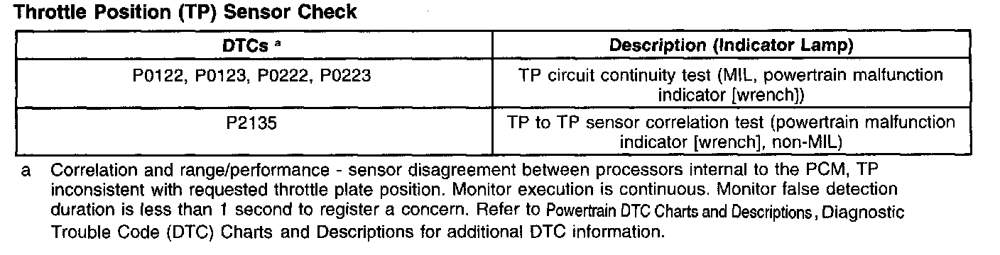 Throttle Position (TP) Sensor Check:
