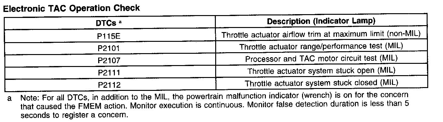 Electronic Throttle Actuator Control (TAC) Output