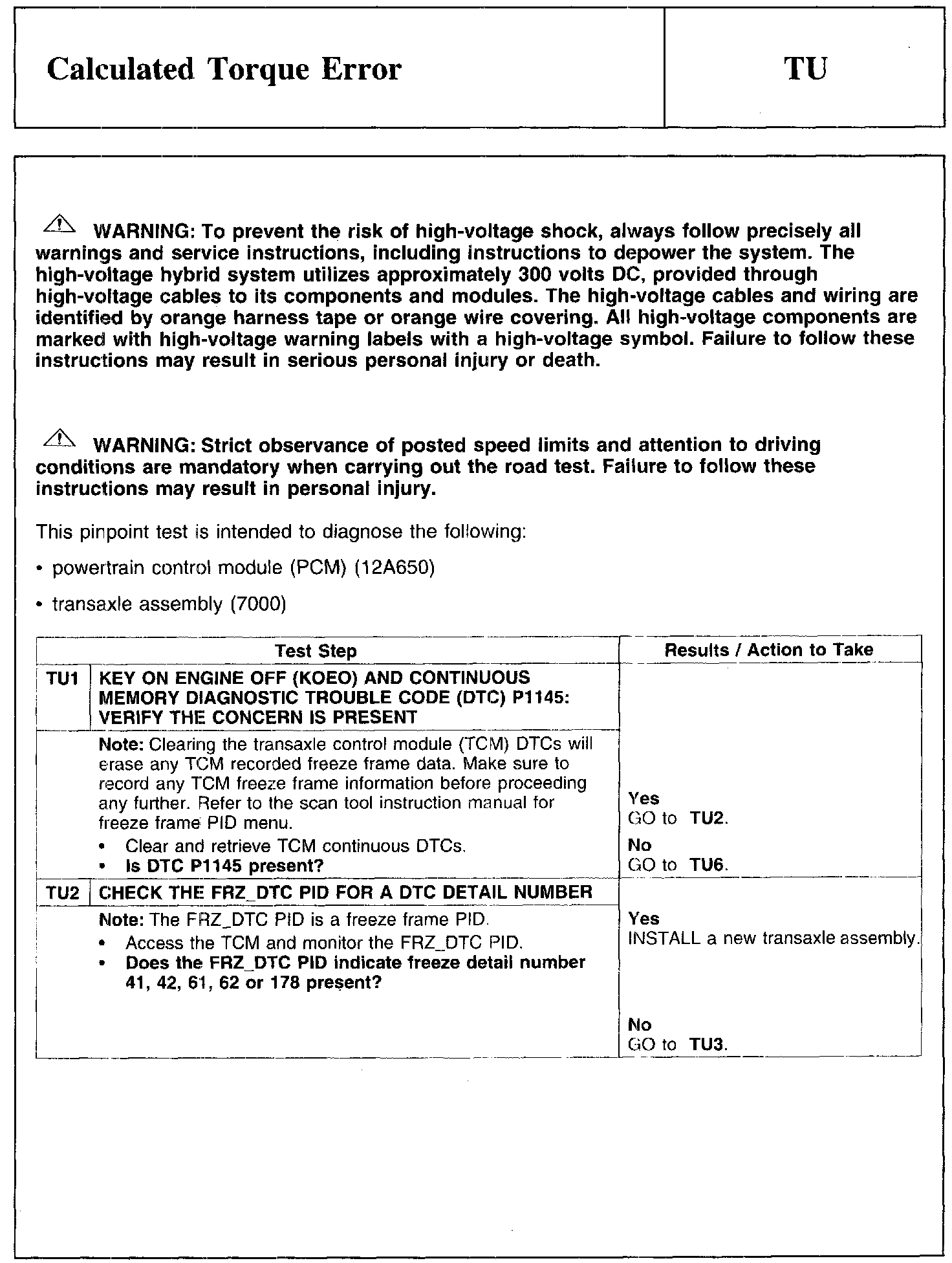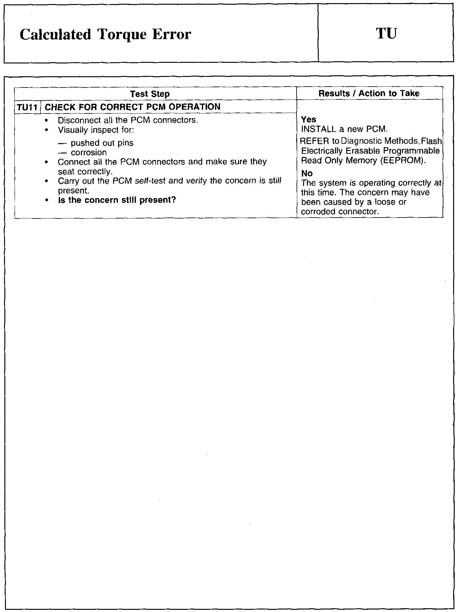 Test TU: Calculated Torque Error