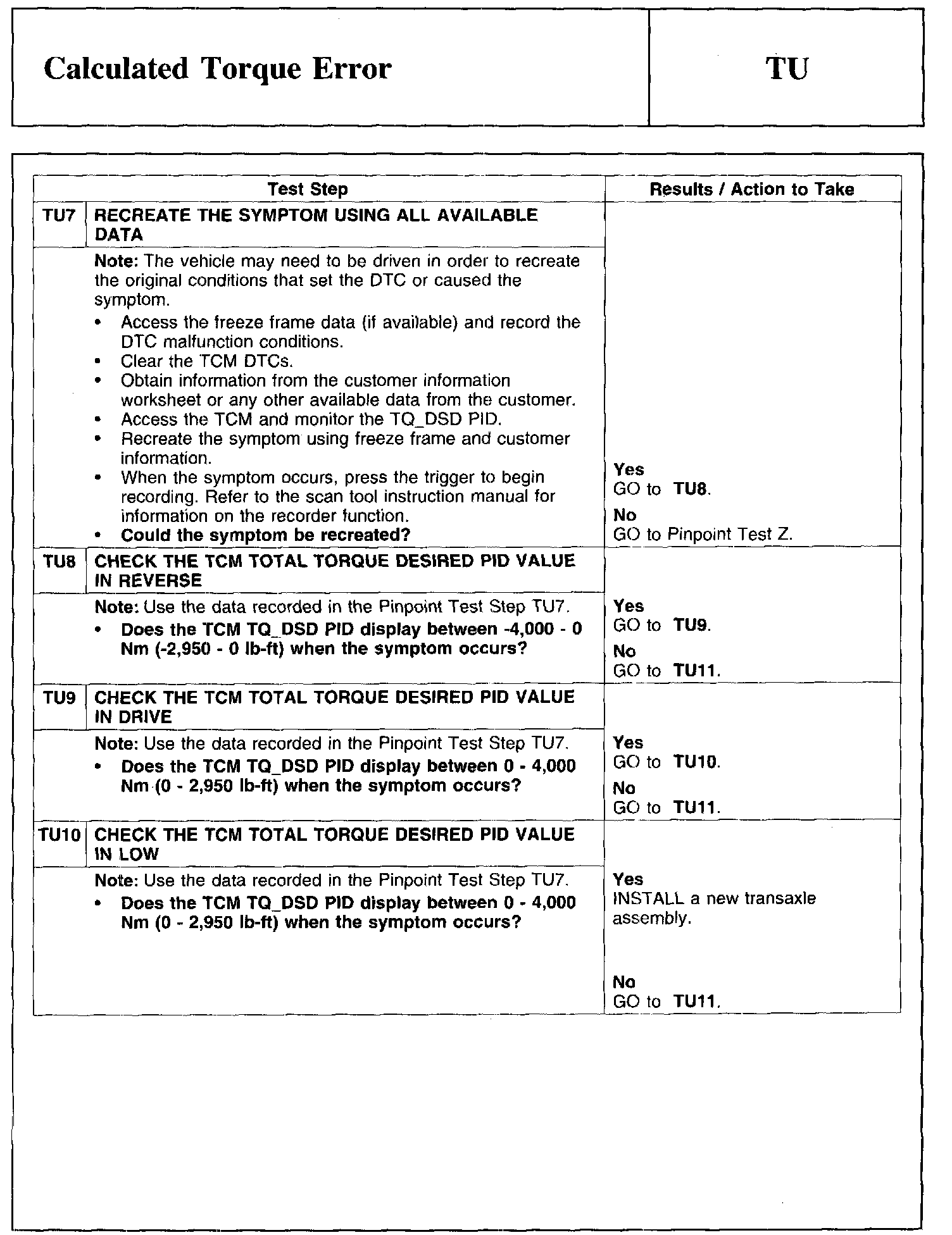 PINPOINT TEST TU: CALCULATED TORQUE ERROR