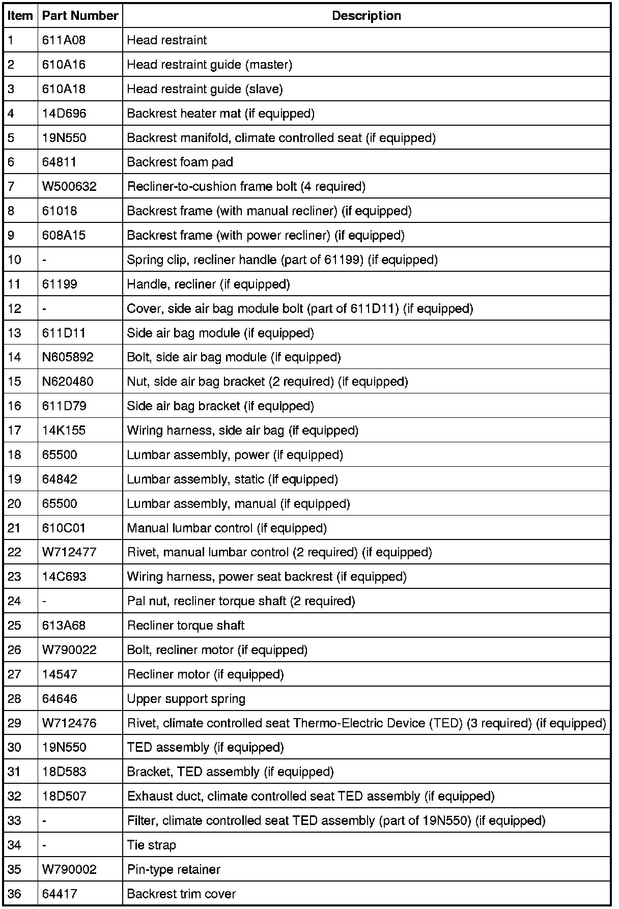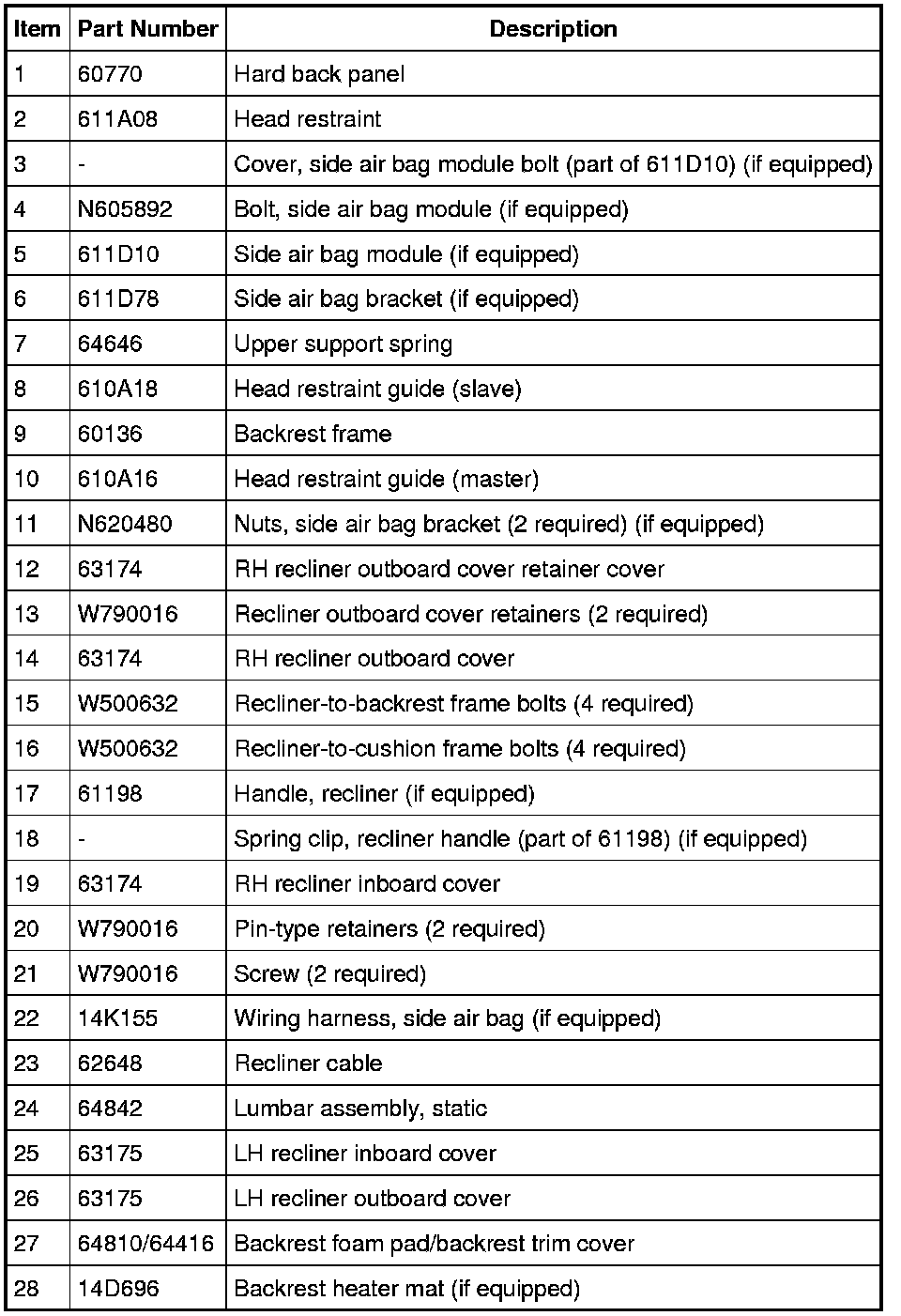 NOTE: Driver backrest shown, passenger backrest similar.