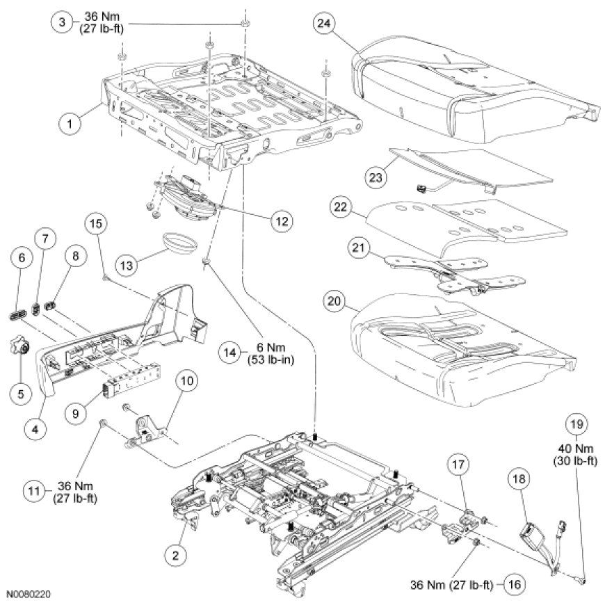 Home >> Ford >> 2010 >> Fusion FWD V6-3.0L >> Repair and Diagnosis >> Body and Frame >> Seats >> Seat Temperature Control Module >> Service and Repair >> Seat - Exploded View, Front