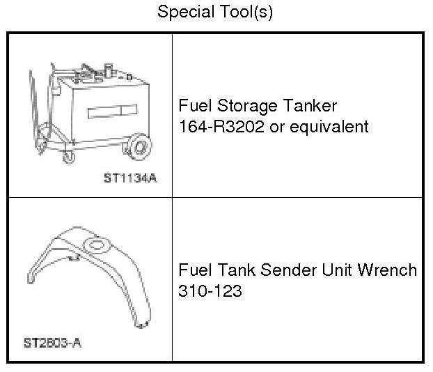 NOTE: Vehicles with an inaccurate or inoperable fuel gauge, follow the instructions for draining a fuel tank with more than three-fourths of a tank of fuel.
