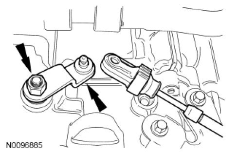 15. Connect the selector lever cable end to the manual control lever with the manual control lever and selector lever in DRIVE. Check selector lever cable adjustment. For additional information, refer to Automatic Transmission/Transaxle.