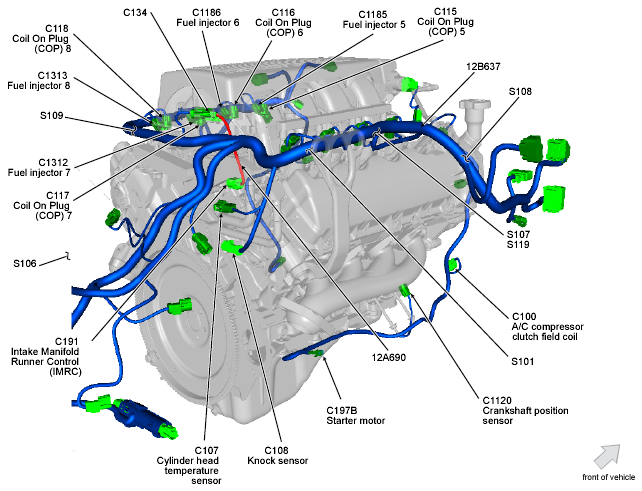 Intake Manifold Runner Control (IMRC) Top front of engine. See Figure.