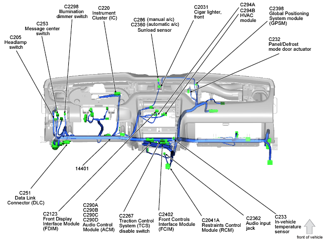 Front Controls Interface Module (FCIM) Lower center of dash. See Figure.