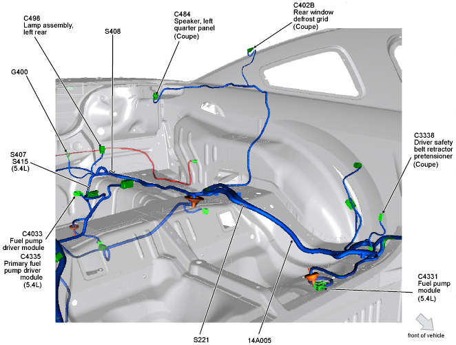Secondary Fuel Pump Driver Module Rear of luggage compartment. See Figure.