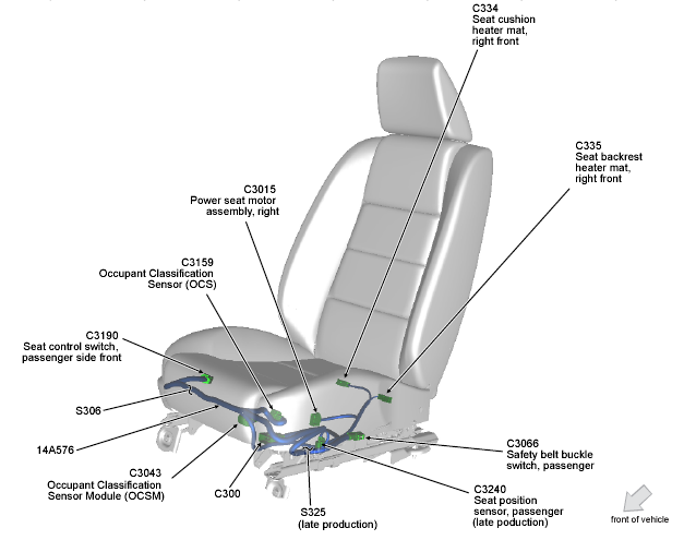 Occupant Classification Sensor Module Under passenger's seat. See Figure.