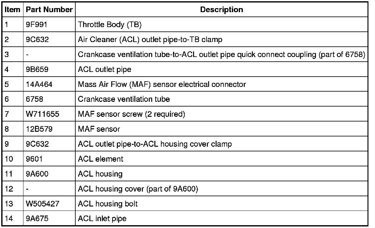 Intake Air System Components - Exploded View, 4.0L SOHC
