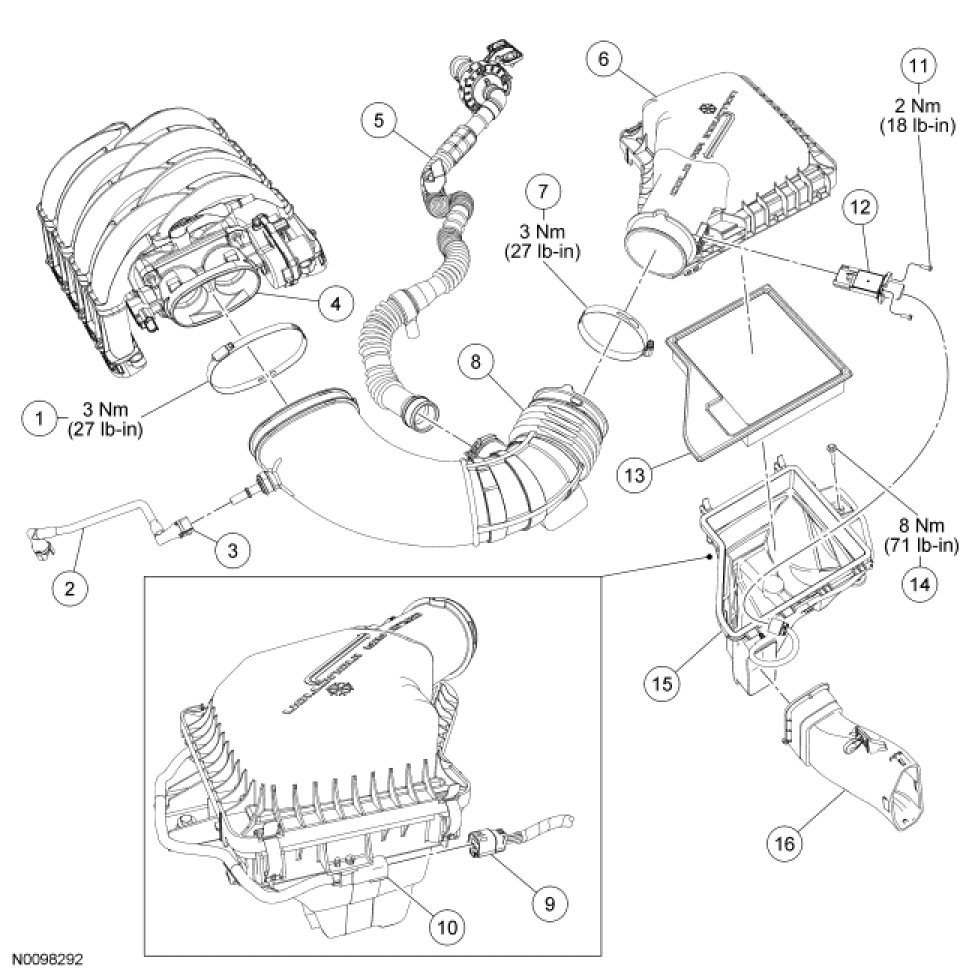 Intake Air System Components - Exploded View, 4.6L (3V)