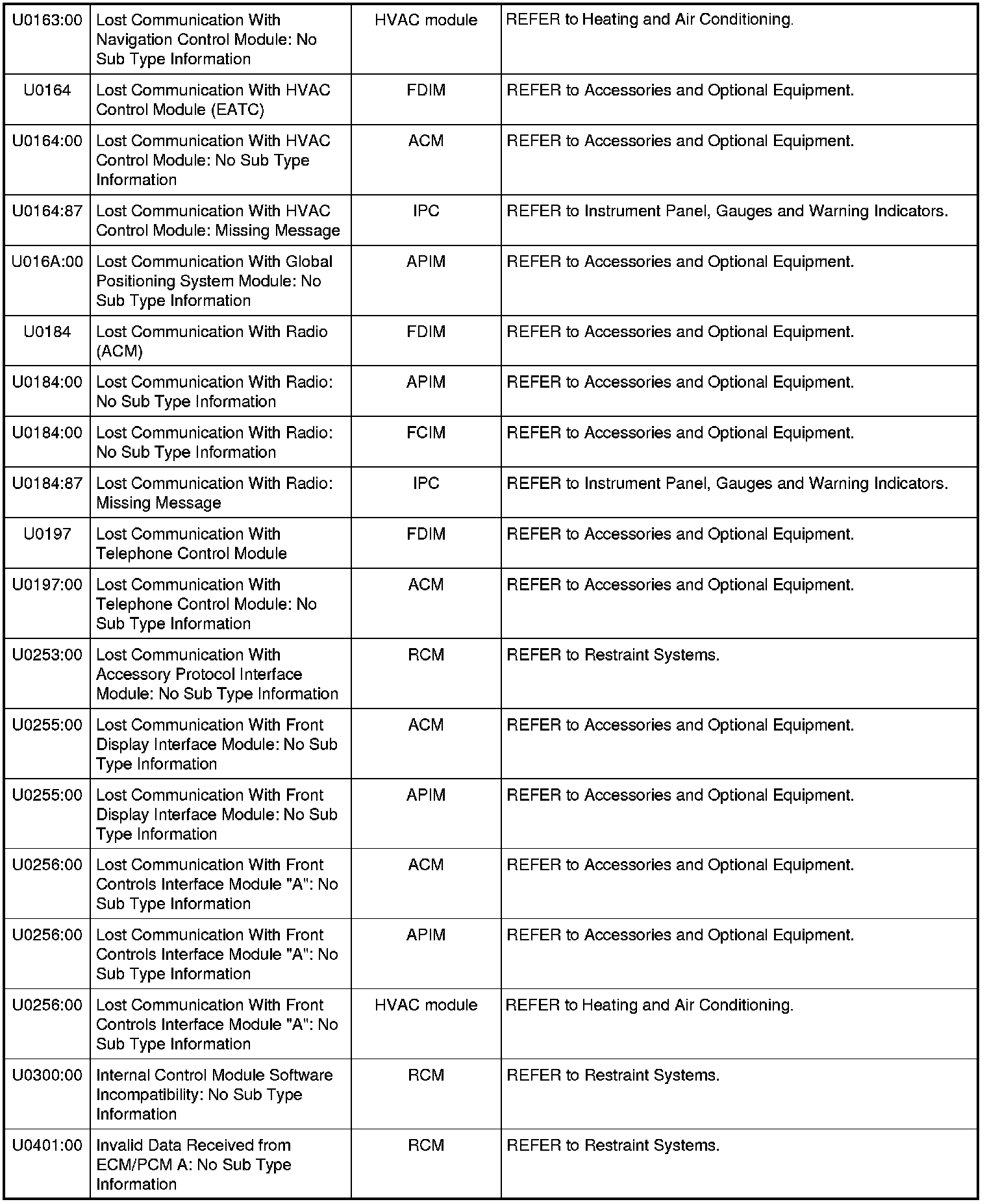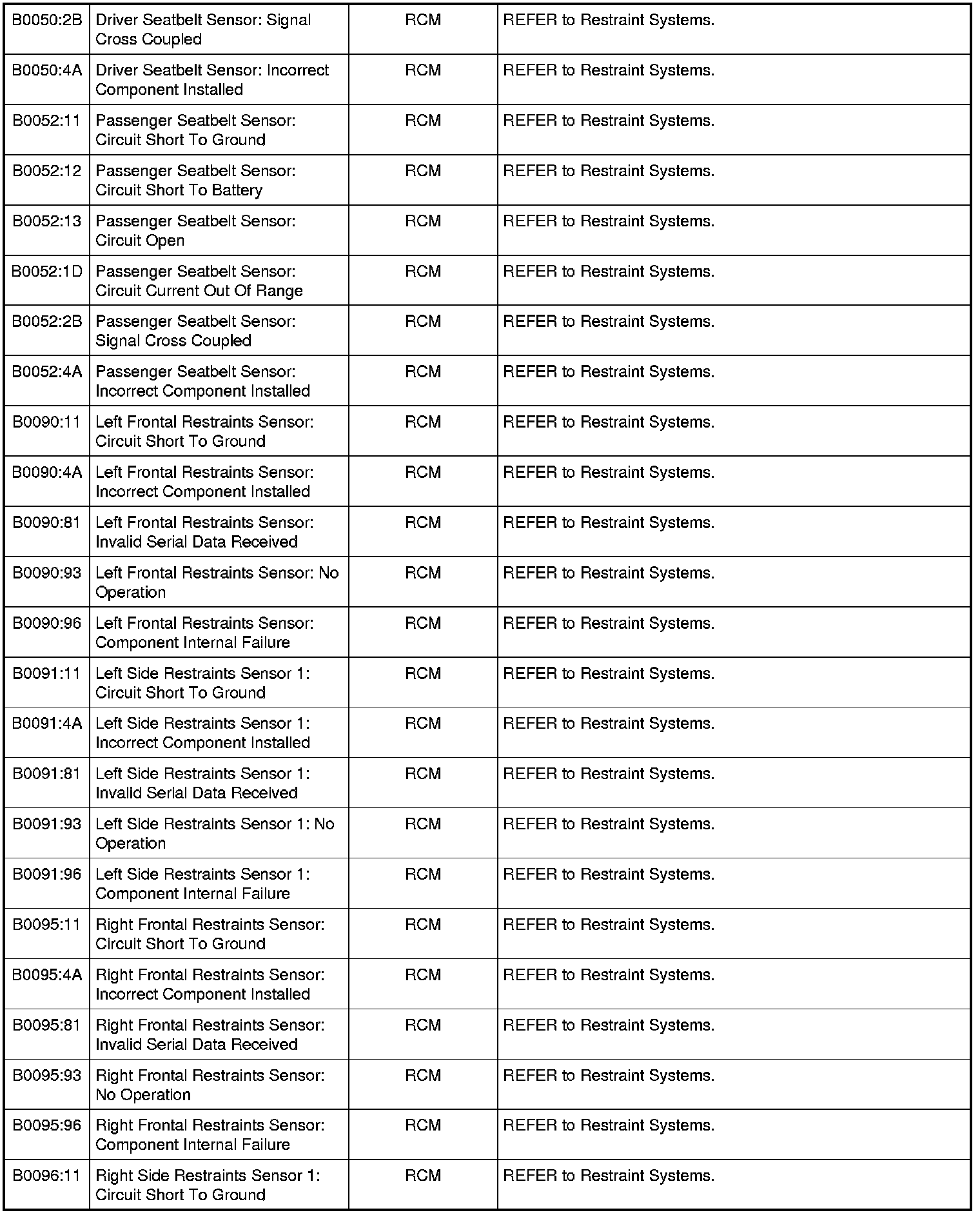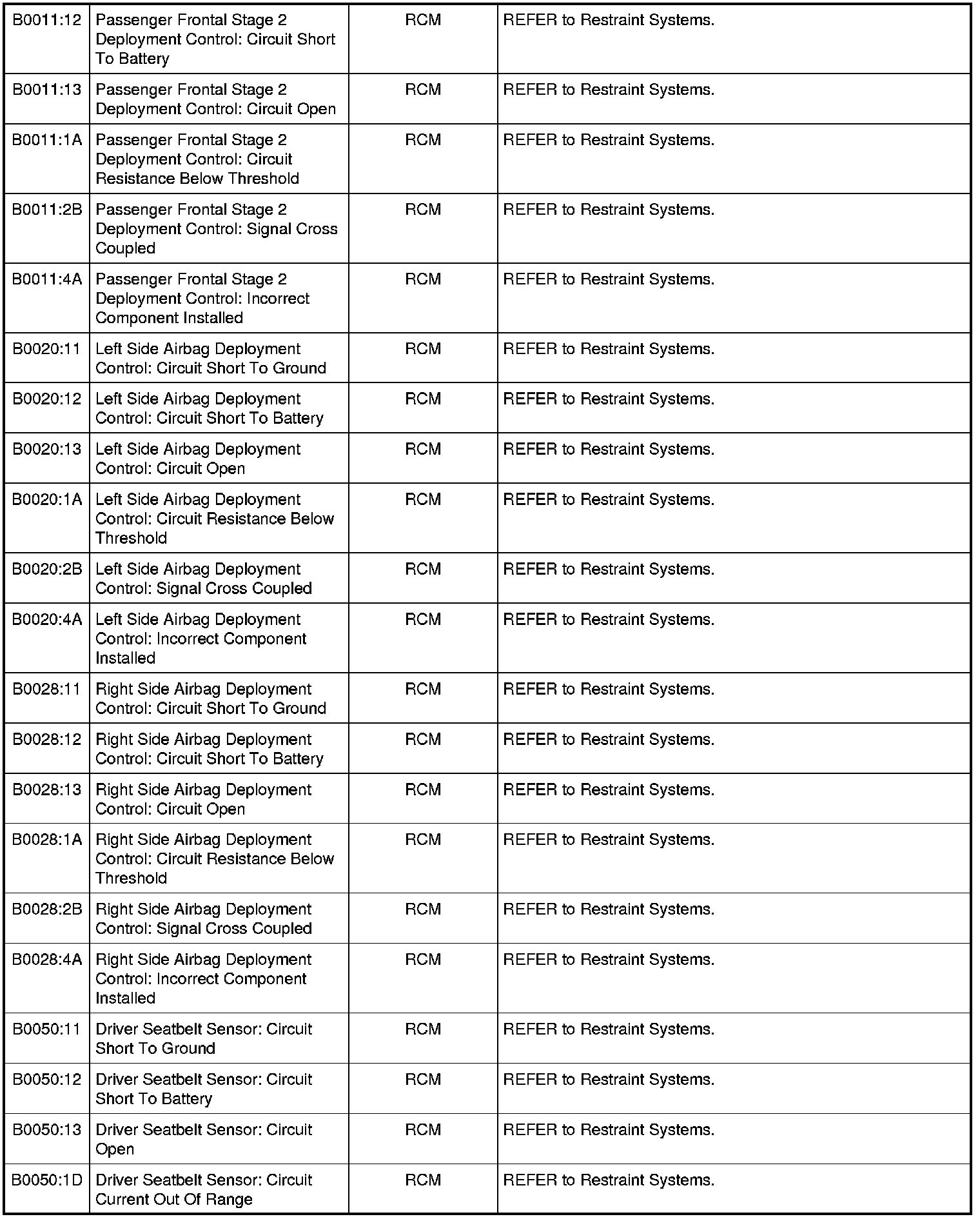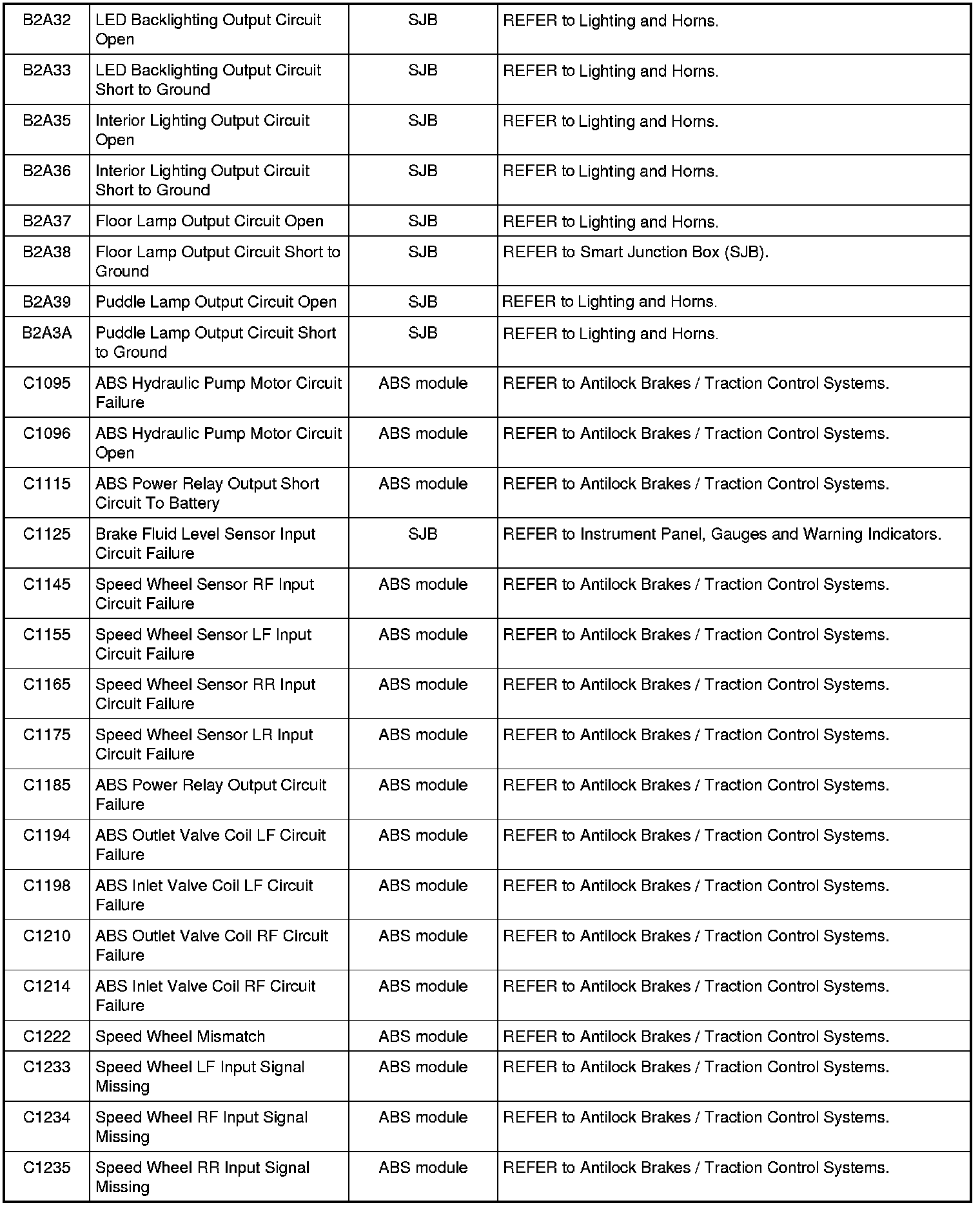 Home >> Ford >> 2010 >> Mustang V8-5.4L SC >> Repair and Diagnosis >> Body and Frame >> Body Control Systems >> Testing and Inspection >> Diagnostic Trouble Code Descriptions >> Diagnostic Trouble Code (DTC) Chart
