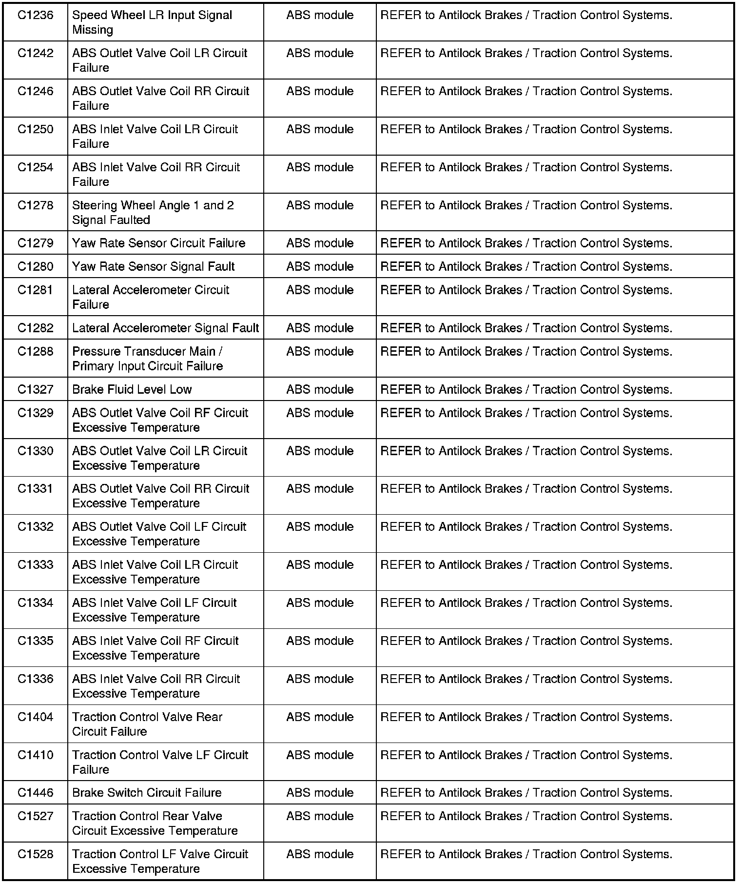 NOTE: Some of these modules utilizes a 5-character DTC followed by a 2-character failure-type code. The failure-type code provides information about specific fault conditions such as opens, or shorts to ground. Continuous memory DTCs have an additional 2-character DTC status code suffix to assist in determining DTC history.