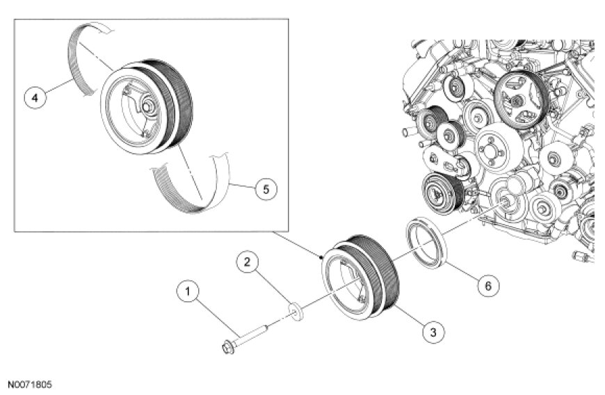 Lower End Components - Exploded View, Crankshaft Pulley and Crankshaft Front Seal