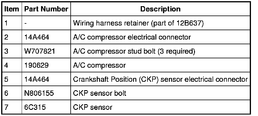 4. Disconnect the A/C compressor field coil and the Crankshaft Position (CKP) sensor electrical connectors.
