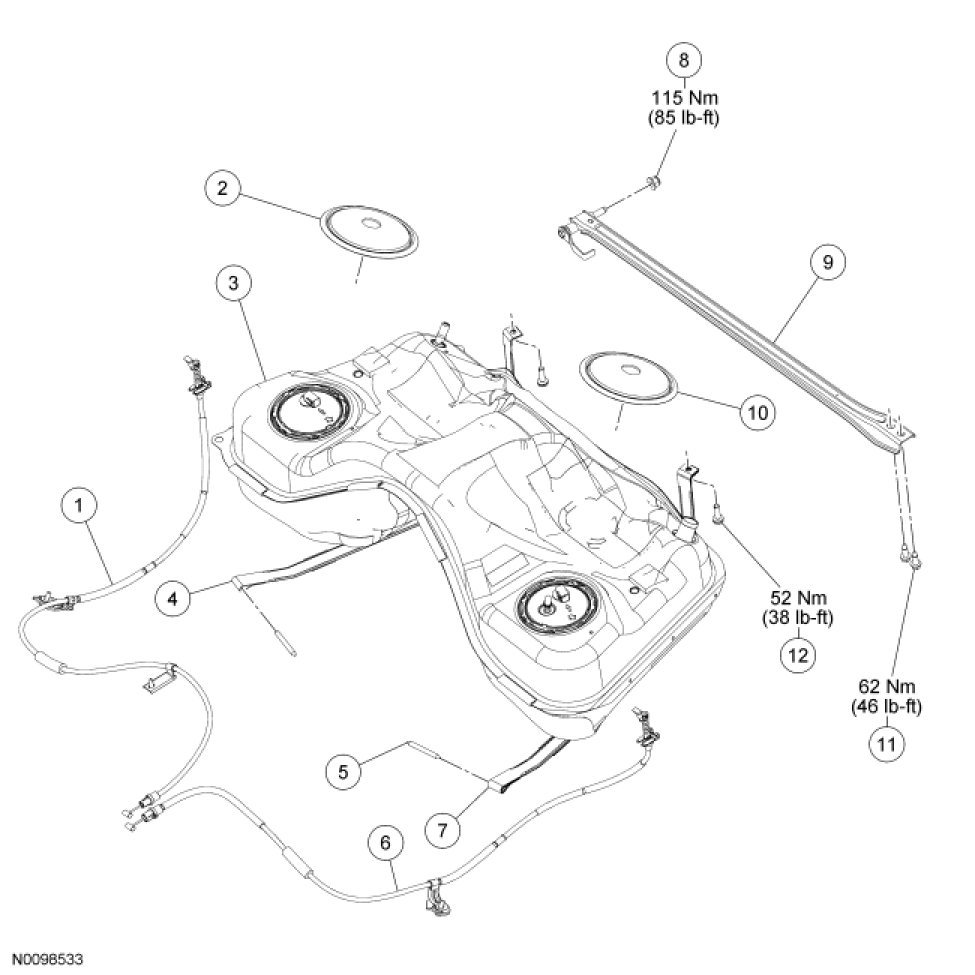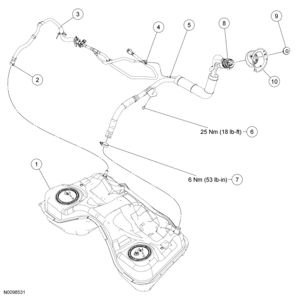 Fuel Tank and Filler Pipe - Exploded View