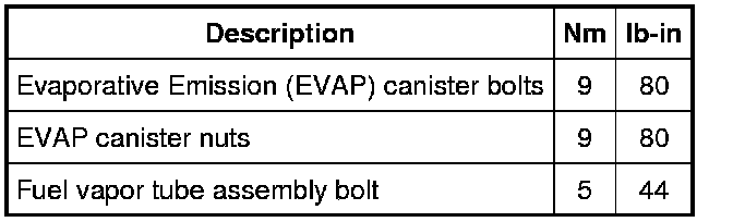 Evaporative Emissions System: Specifications