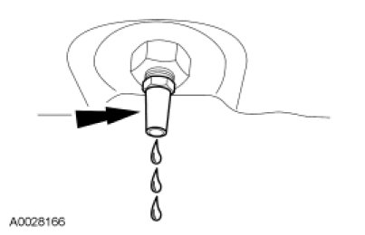 16. Allow the transmission fluid to drain. Make sure that the transmission fluid temperature is between 27°-49°C (80°-120°F). When the transmission fluid comes out as a thin stream or drip, the transmission fluid is at the correct level.