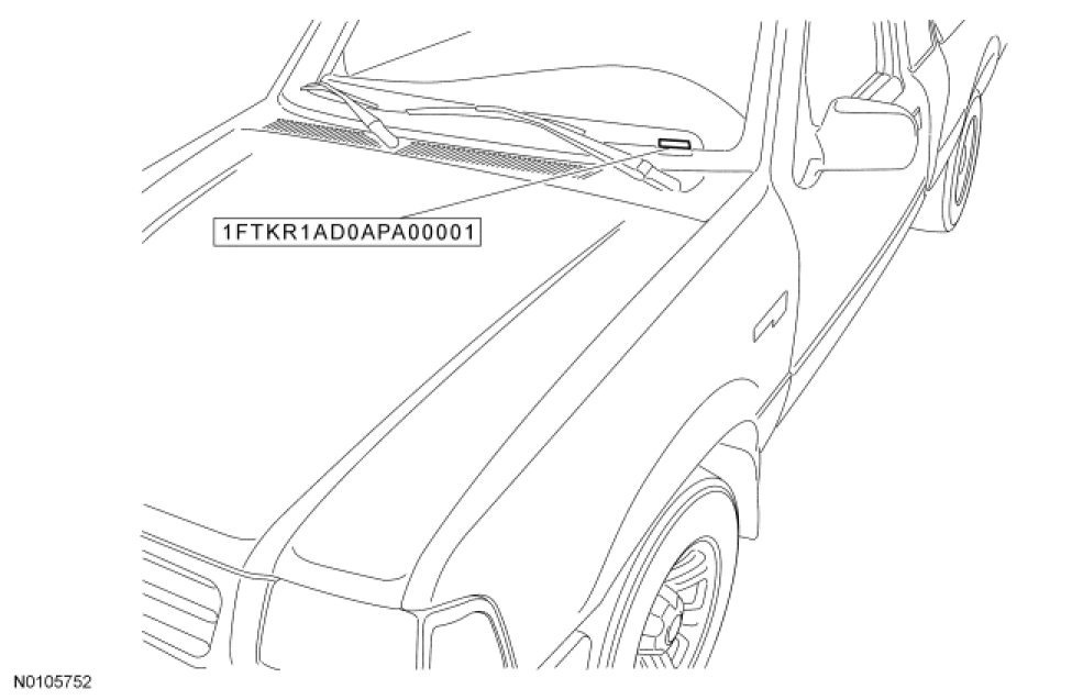 The Vehicle Identification Number (VIN) is a 17-digit combination of letters and numbers. The VIN is stamped on a metal tab riveted to the instrument panel, top upper left of the instrument panel. The VIN is also found on the Vehicle Certification (VC) label.