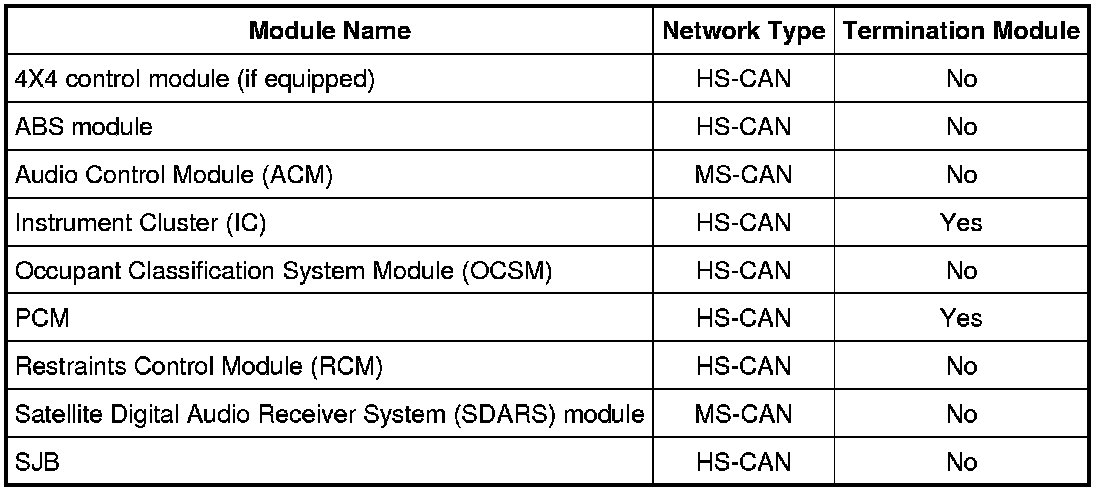 The Instrument Cluster (IC) is the gateway module, translating messages on the High Speed Controller Area Network (HS-CAN) to the Medium Speed Controller Area Network (MS-CAN) and vice versa. This allows a message to be distributed throughout both networks.