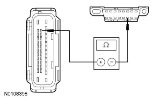 - Measure the resistance between the ABS module C135-14, circuit VDB05 (WH), harness side and the DLC C251-14, circuit VDB05 (WH), harness side.