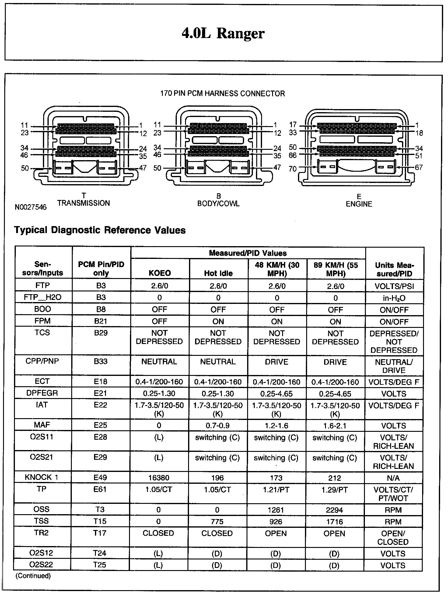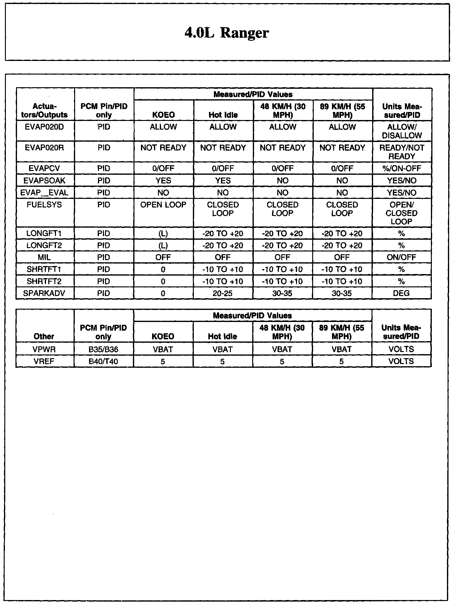 Home >> Ford >> 2010 >> Ranger 2WD V6-4.0L >> Repair and Diagnosis >> Powertrain Management >> Computers and Control Systems >> Testing and Inspection >> Scan Tool Testing and Procedures >> Typical Diagnostic Reference Values