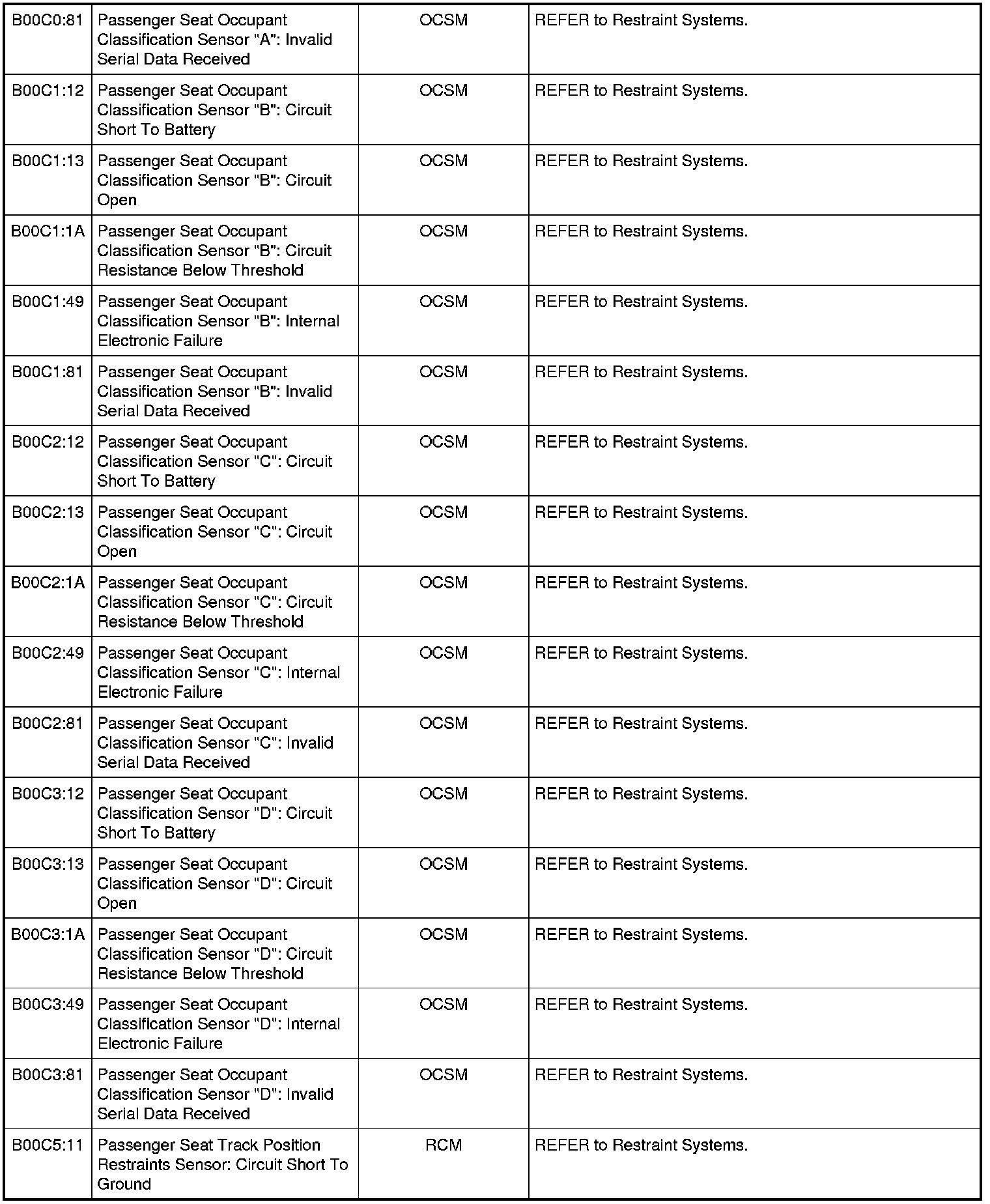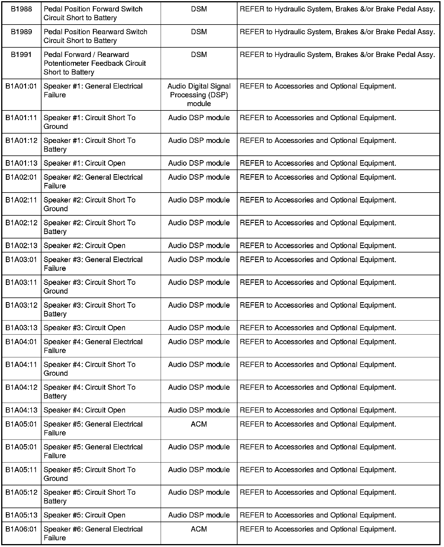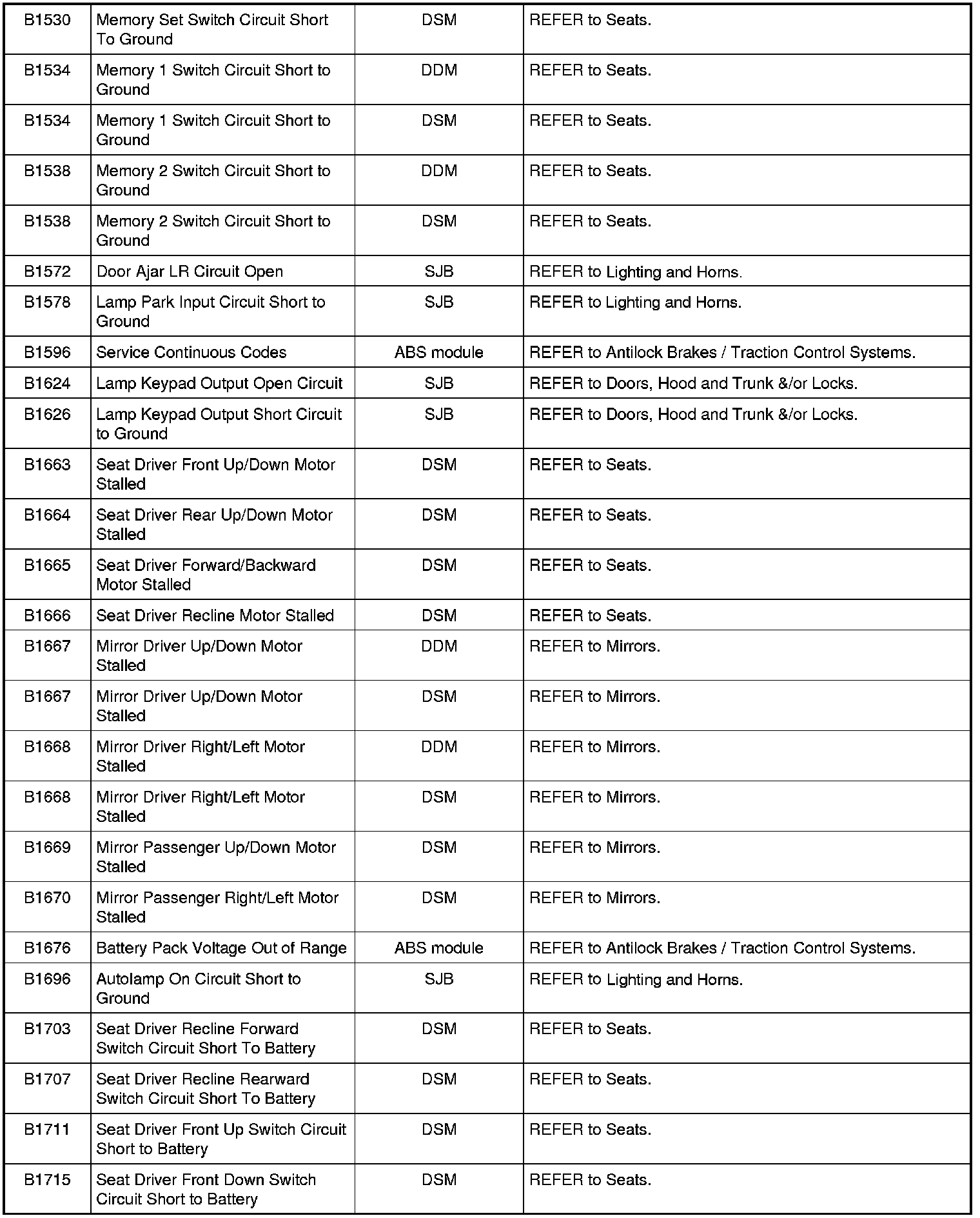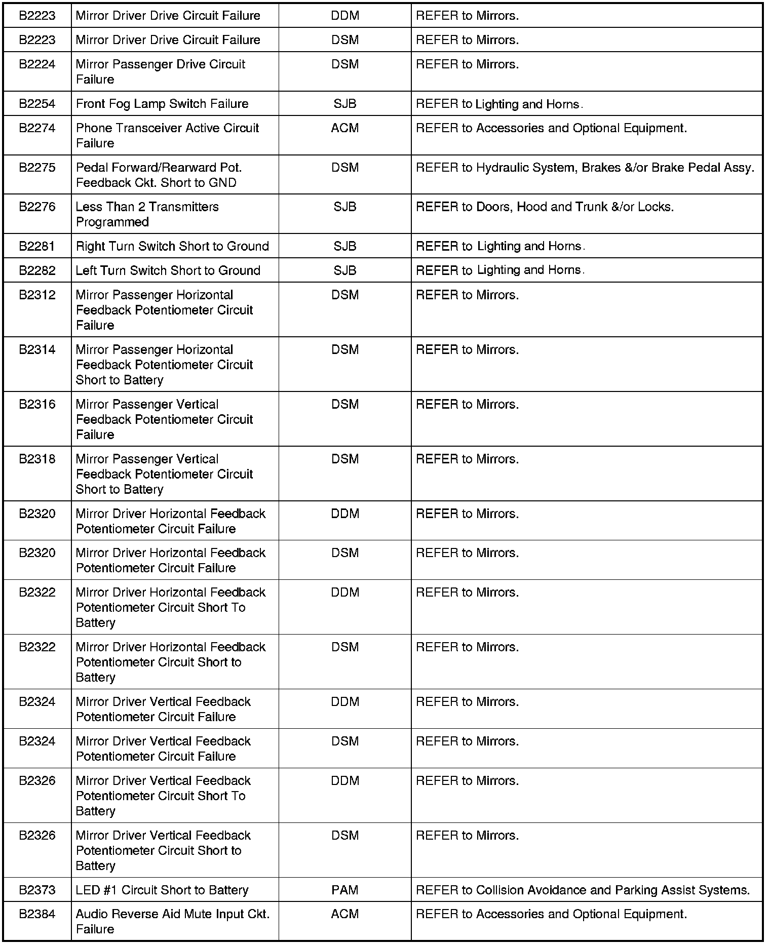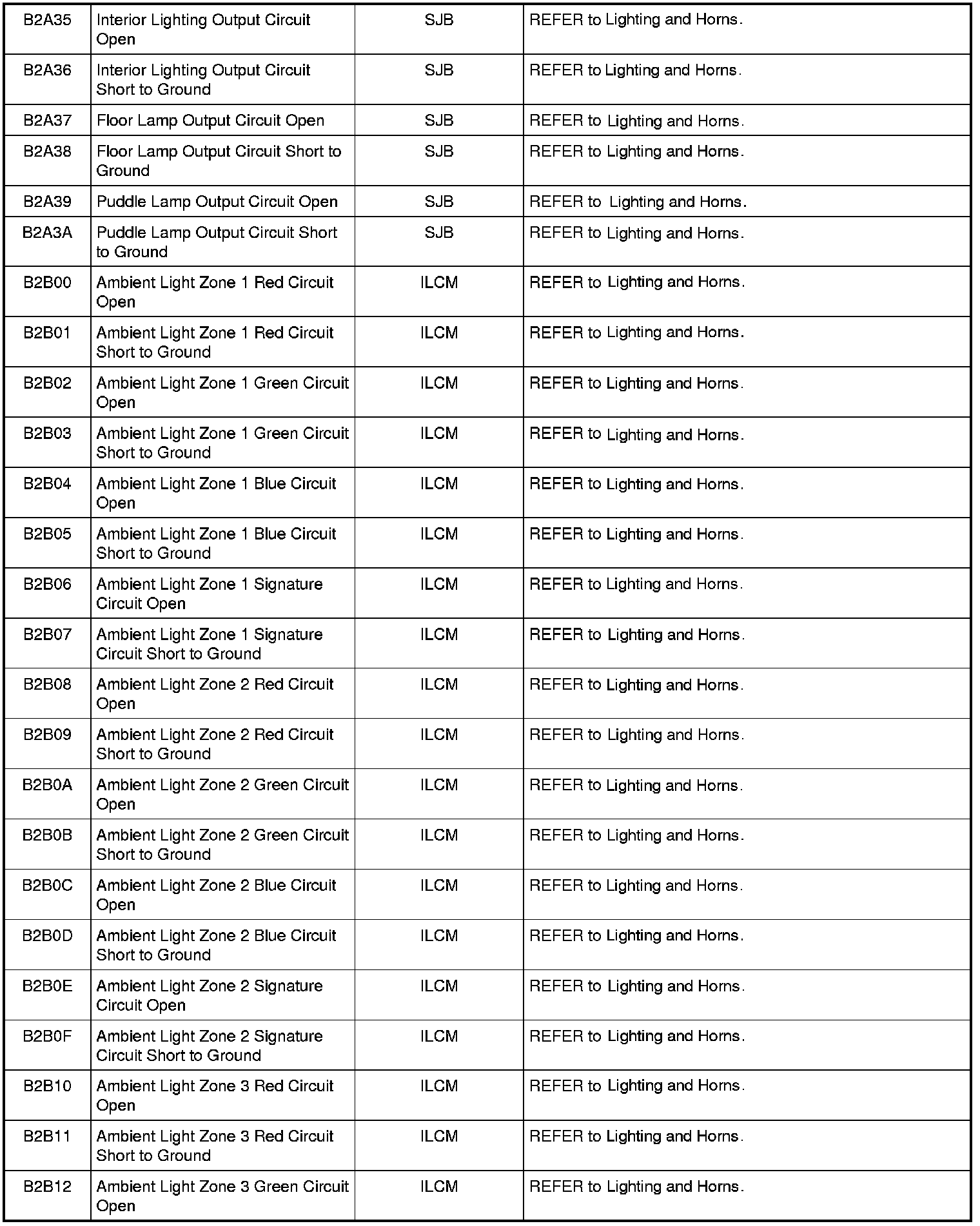 Home >> Ford >> 2010 >> Taurus AWD V6-3.5L >> Repair and Diagnosis >> Body and Frame >> Body Control Systems >> Testing and Inspection >> Diagnostic Trouble Code Descriptions >> Diagnostic Trouble Code (DTC) Chart