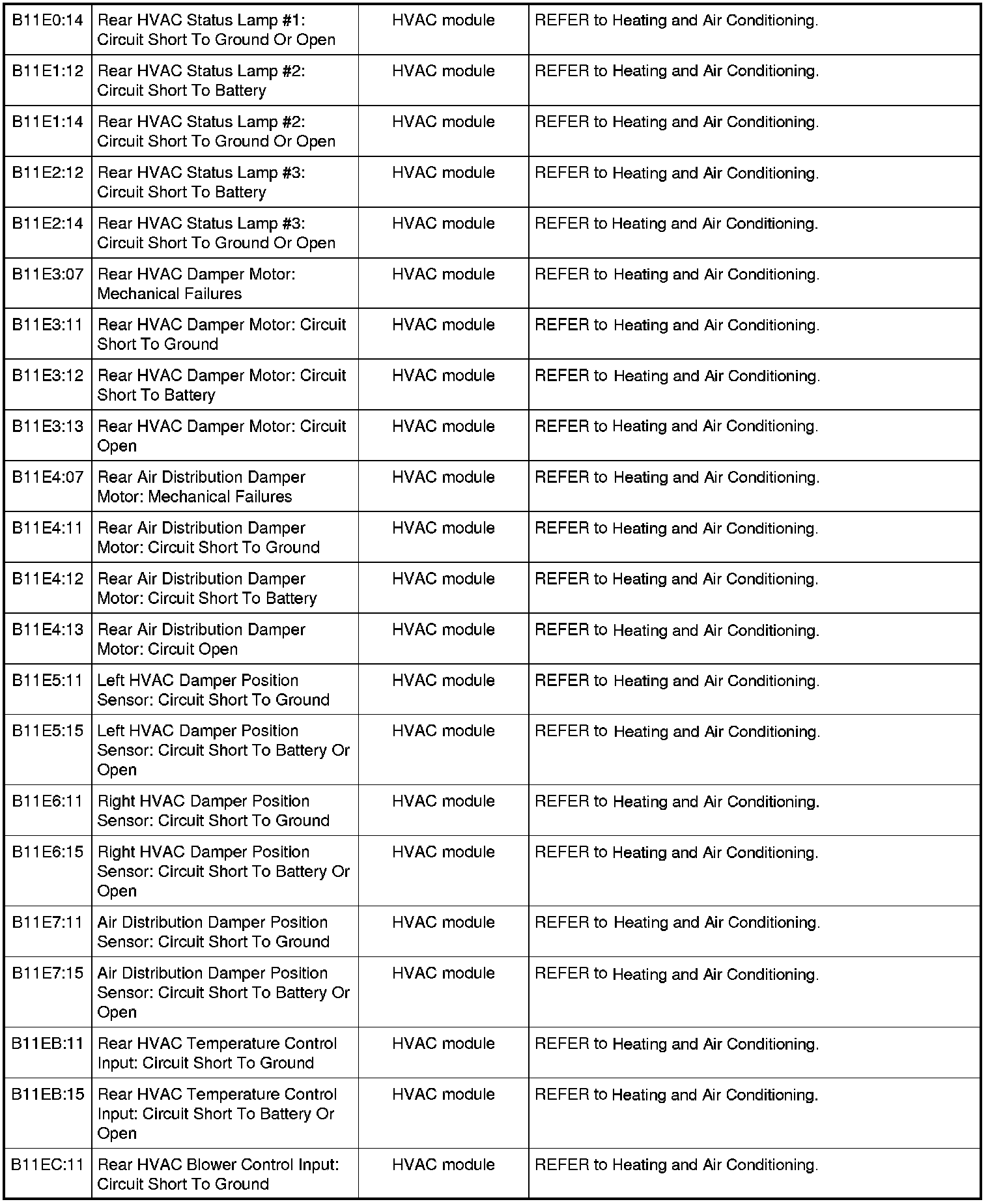 NOTE: Some of these modules utilize a 5-character DTC followed by a 2-character failure-type code. The failure-type code provides information about specific fault conditions such as opens, or shorts to ground. Continuous memory DTCs have an additional 2-character DTC status code suffix to assist in determining DTC history.
