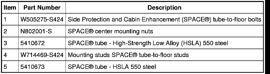 1. NOTE: The Side Protection and Cabin Enhancement (SPACE(R)) tube is serviced as an assembly only.