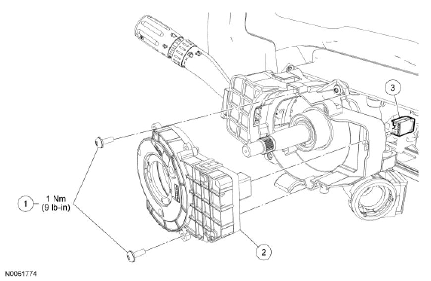 6. Install the clockspring. For additional information, refer to Restraint Systems.